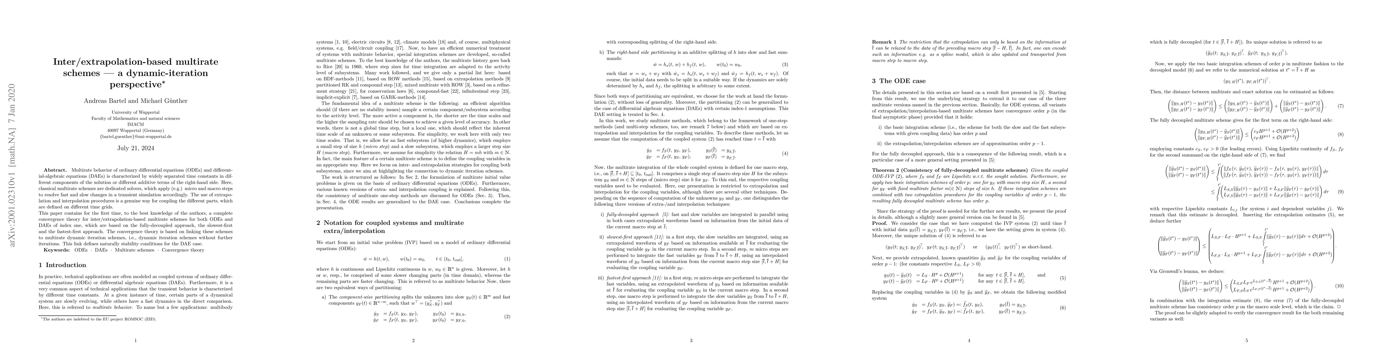 This paper presents a convergence theory for inter/extrapolation-based multirate schemes for solving ODEs and DAEs, linking them to dynamic iteration schemes. The theory applies to fully-decoupled, slowest-first, and fastest-first approaches, establishing stability conditions for DAEs.