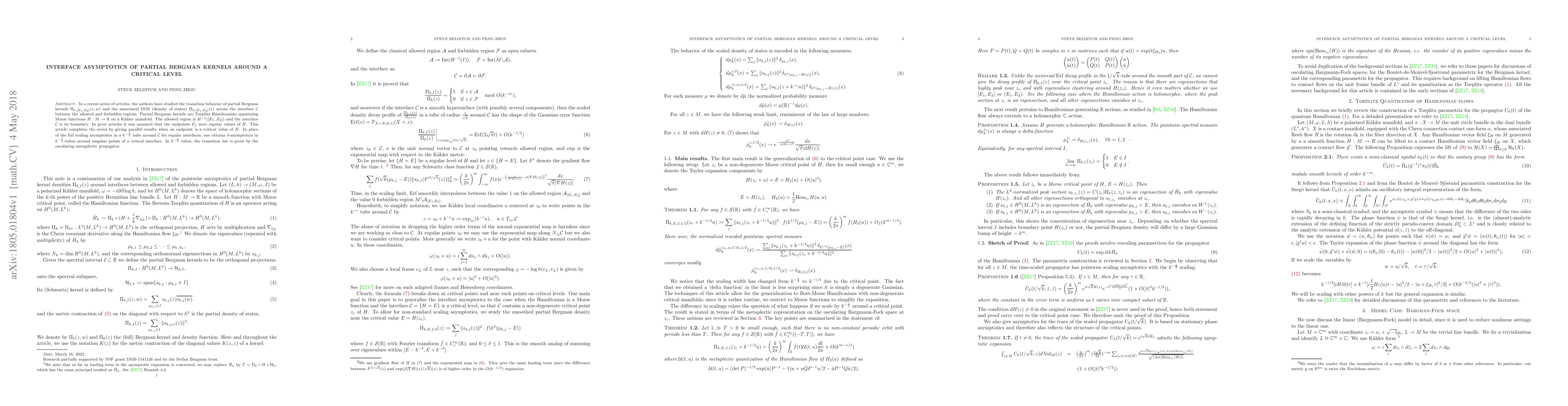 In a recent series of articles (arXiv:1604.06655, arXiv:1708.09267), the authors have studied the transition behavior of partial Bergman kernels $\Pi_{k, [E_1, E_2]}(z,w)$ and the associated DOS (density of states) $\Pi_{k, [E_1, E_2]}(z)$ across the interface $\ccal$ between the allowed and forbidden regions. Partial Bergman kernels are Toeplitz Hamiltonians quantizing Morse functions $H: M \to \R$ on a \kahler manifold. The allowed region is $H^{-1}([E_1, E_2])$ and the interface $\ccal$ is its boundary. In prior articles it was assumed that the endpoints $E_j$ were regular values of $H$. This article completes the series by giving parallel results when an endpoint is a critical value of $H$. In place of the Erf scaling asymptotics in a $k^{-\half} $ tube around $\ccal$ for regular interfaces, one obtains $\delta$-asymptotics in $k^{-\frac{1}{4}}$-tubes around singular points of a critical interface. In $k^{-\half}$ tubes, the transition law is given by the osculating metaplectic propagator.