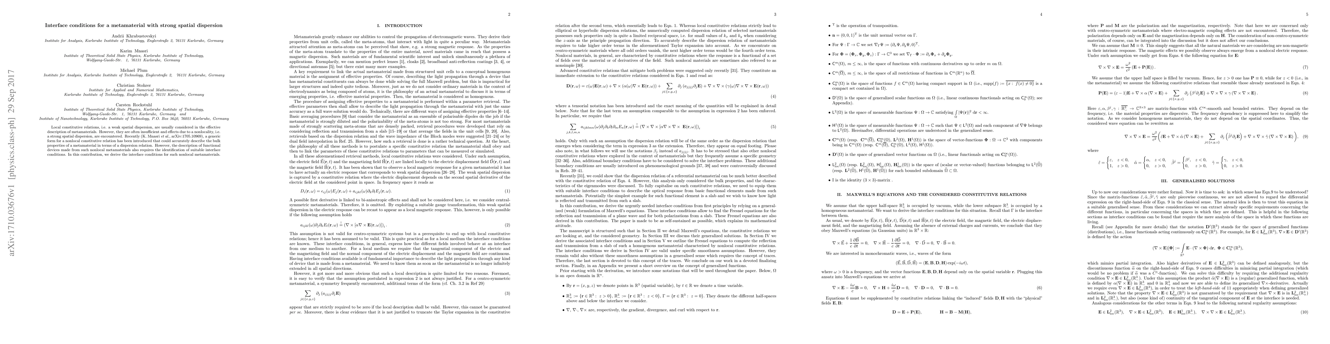 This paper derives the interface conditions for metamaterials exhibiting strong spatial dispersion, extending beyond local constitutive relations to accurately describe nonlocal effects. The findings are crucial for the design of functional devices made from these advanced metamaterials.