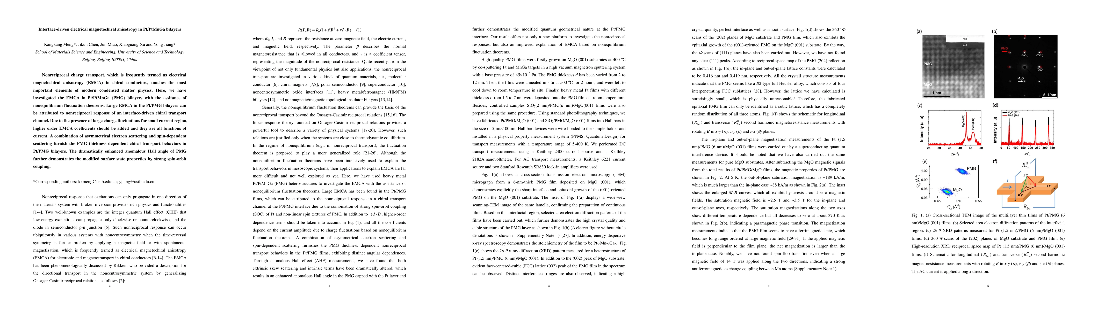 Researchers discovered large electrical magnetochiral anisotropy in a type of conductor called Pt/PtMnGa bilayers, which exhibits nonreciprocal charge transport due to an interface-driven chiral transport channel.