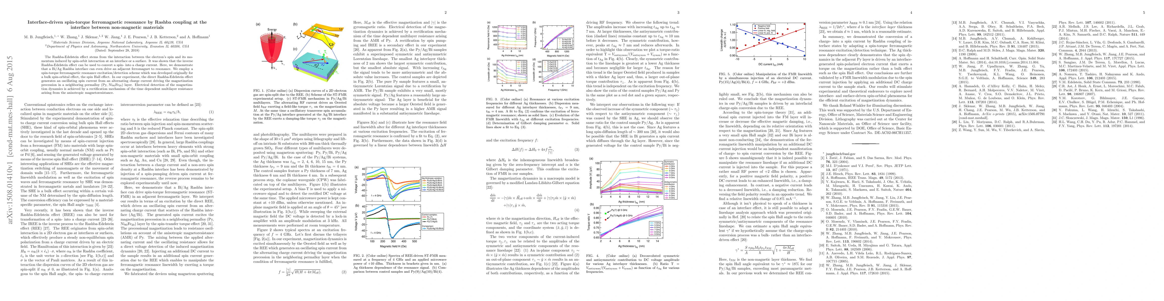 This research demonstrates that a Bi/Ag interface, utilizing the Rashba-Edelstein effect, can drive spin-torque ferromagnetic resonance in an adjacent permalloy layer, converting an alternating charge current into an oscillating spin current that excites magnetization precession. The magnetization dynamics are detected electrically via anisotropic magnetoresistance.