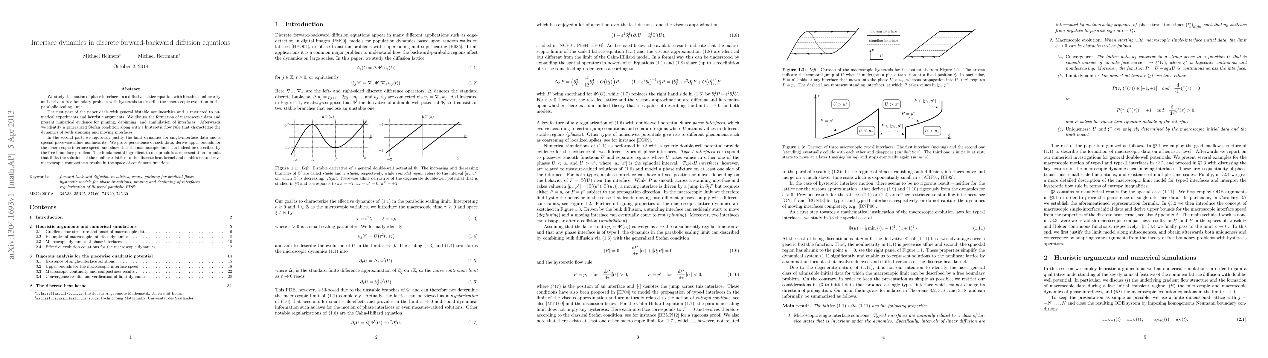 We study the motion of phase interfaces in a diffusive lattice equation with bistable nonlinearity and derive a free boundary problem with hysteresis to describe the macroscopic evolution in the parabolic scaling limit. The first part of the paper deals with general bistable nonlinearities and is restricted to numerical experiments and heuristic arguments. We discuss the formation of macroscopic data and present numerical evidence for pinning, depinning, and annihilation of interfaces. Afterwards we identify a generalized Stefan condition along with a hysteretic flow rule that characterize the dynamics of both standing and moving interfaces. In the second part, we rigorously justify the limit dynamics for single-interface data and a special piecewise affine nonlinearity. We prove persistence of such data, derive upper bounds for the macroscopic interface speed, and show that the macroscopic limit can indeed be described by the free boundary problem. The fundamental ingredient to our proofs is a representation formula that links the solutions of the nonlinear lattice to the discrete heat kernel and enables us to derive macroscopic compactness results in the space of continuous functions.