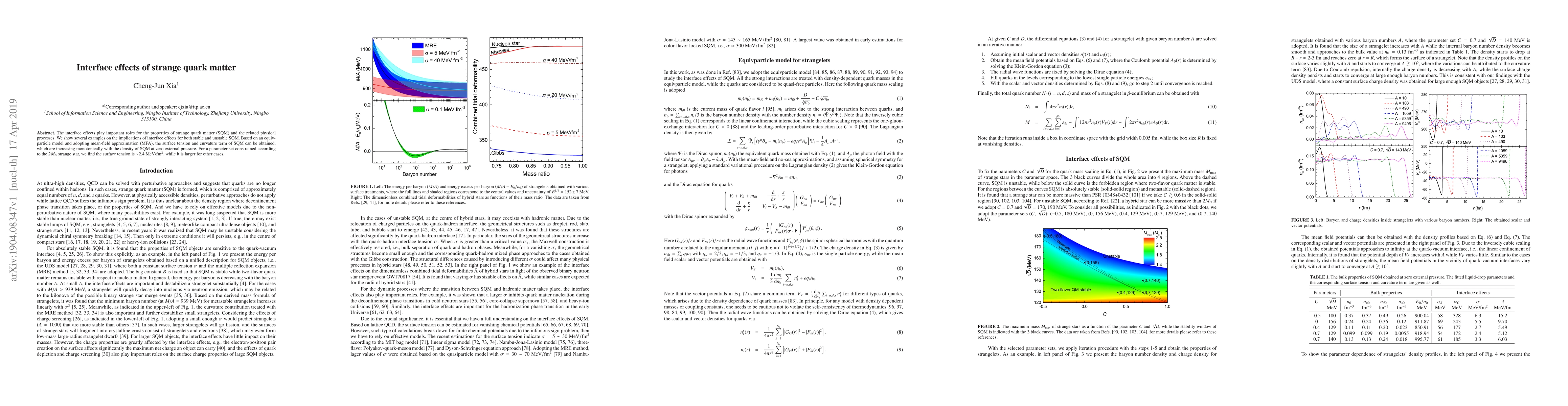 The interface effects play important roles for the properties of strange quark matter (SQM) and the related physical processes. We show several examples on the implications of interface effects for both stable and unstable SQM. Based on an equivparticle model and adopting mean-field approximation (MFA), the surface tension and curvature term of SQM can be obtained, which are increasing monotonically with the density of SQM at zero external pressure. For a parameter set constrained according to the 2$M_\odot$ strange star, we find the surface tension is $\sim$2.4 MeV/fm${}^2$, while it is larger for other cases.