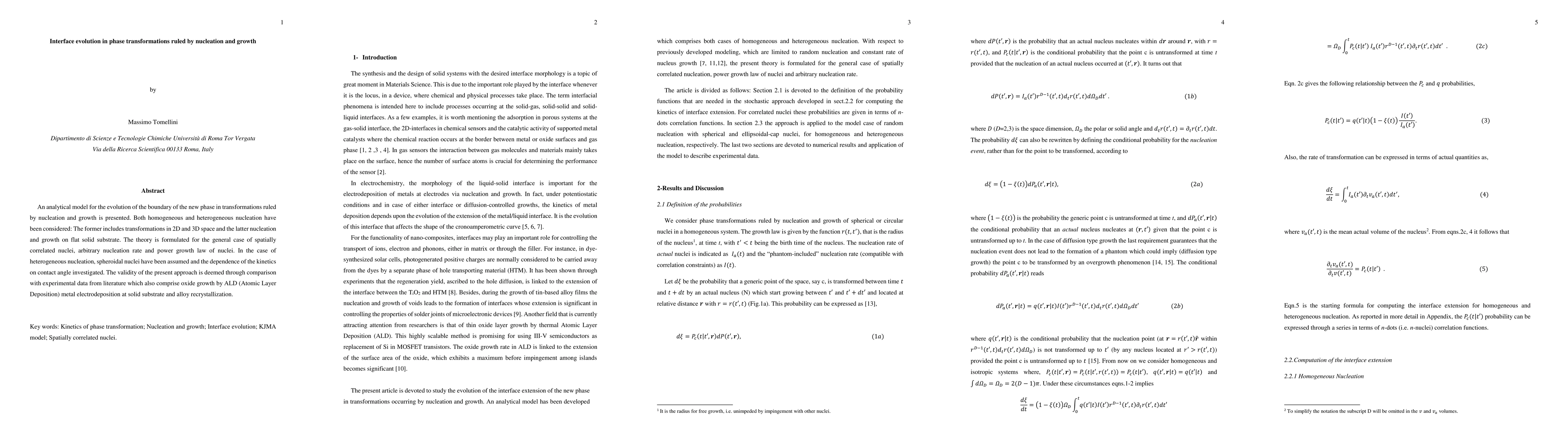 An analytical model for the evolution of the boundary of the new phase in transformations ruled by nucleation and growth is presented. Both homogeneous and heterogeneous nucleation have been considered: The former includes transformations in 2D and 3D space and the latter nucleation and growth on flat solid substrate. The theory is formulated for the general case of spatially correlated nuclei, arbitrary nucleation rate and power growth law of nuclei. In the case of heterogeneous nucleation, spheroidal nuclei have been assumed and the dependence of the kinetics on contact angle investigated. The validity of the present approach is deemed through comparison with experimental data from literature which also comprise oxide growth by ALD (Atomic Layer Deposition) metal electrodeposition at solid substrate and alloy recrystallization.