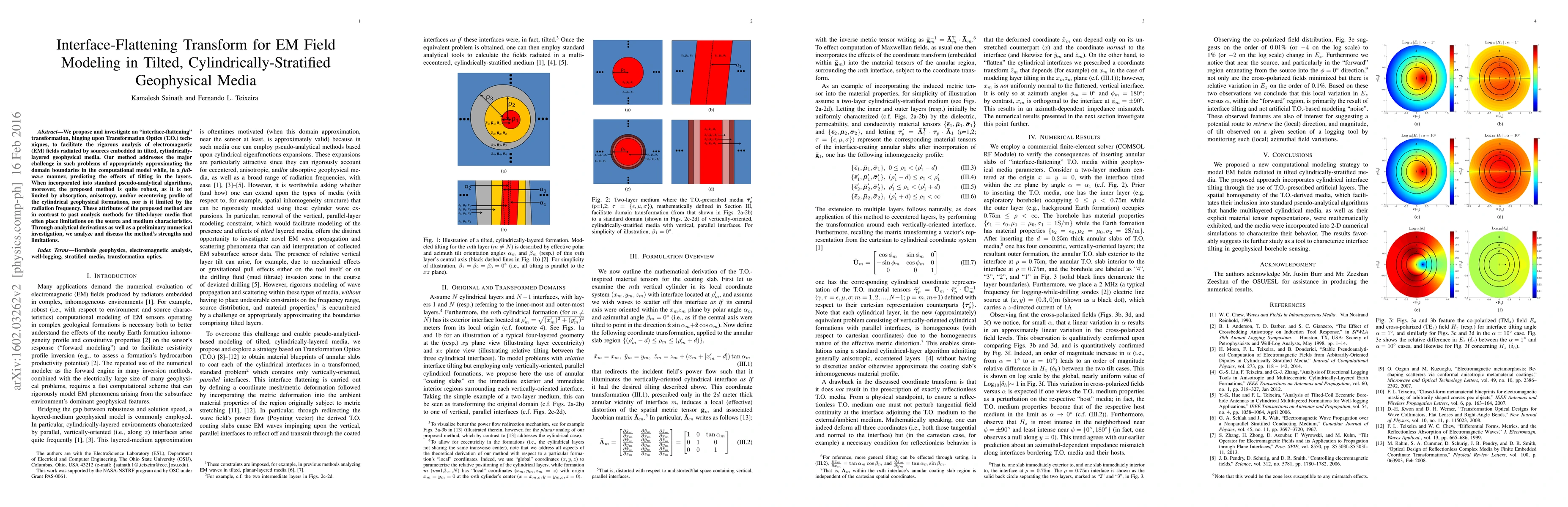 The paper introduces an interface-flattening transformation that enables pseudo-analytical-based modeling of tilted, cylindrically-layered media without undesirable constraints on frequency range, source distribution, and material properties.