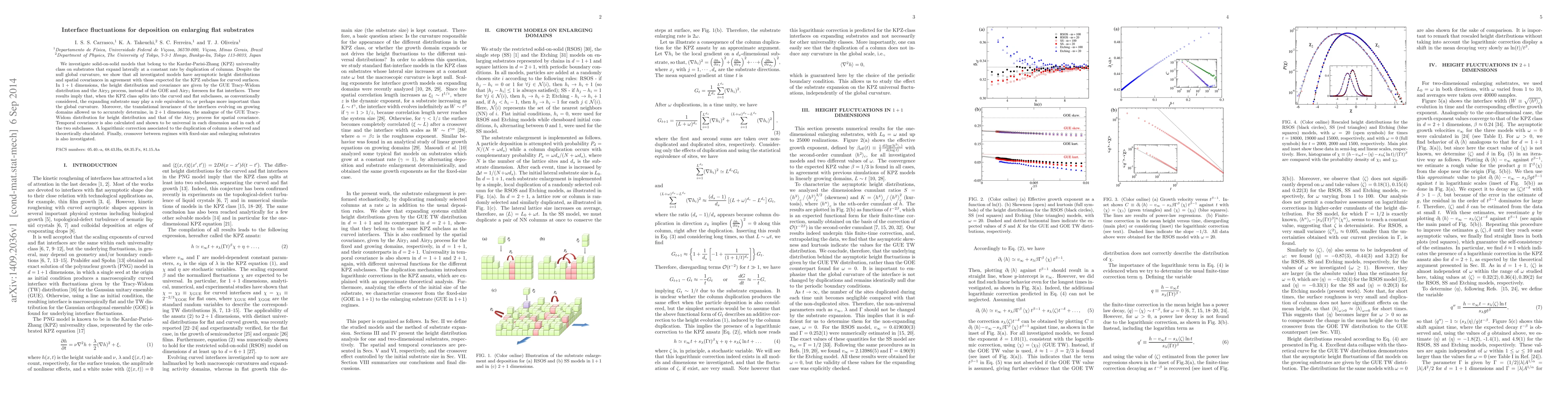 We investigate solid-on-solid models that belong to the Kardar-Parisi-Zhang (KPZ) universality class on substrates that expand laterally at a constant rate by duplication of columns. Despite the null global curvature, we show that all investigated models have asymptotic height distributions and spatial covariances in agreement with those expected for the KPZ subclass for curved surfaces. In $1+1$ dimensions, the height distribution and covariance are given by the GUE Tracy-Widom distribution and the Airy$_2$ process, instead of the GOE and Airy$_1$ foreseen for flat interfaces. These results imply that, when the KPZ class splits into the curved and flat subclasses, as conventionally considered, the expanding substrate may play a role equivalent to, or perhaps more important than the global curvature. Moreover, the translational invariance of the interfaces evolving on growing domains allowed us to accurately determine, in $2+1$ dimensions, the analogue of the GUE Tracy-Widom distribution for height distribution and that of the Airy$_2$ process for spatial covariance. Temporal covariance is also calculated and shown to be universal in each dimension and in each of the two subclasses. A logarithmic correction associated to the duplication of column is observed and theoretically elucidated. Finally, crossover between regimes with fixed-size and enlarging substrates is also investigated.
