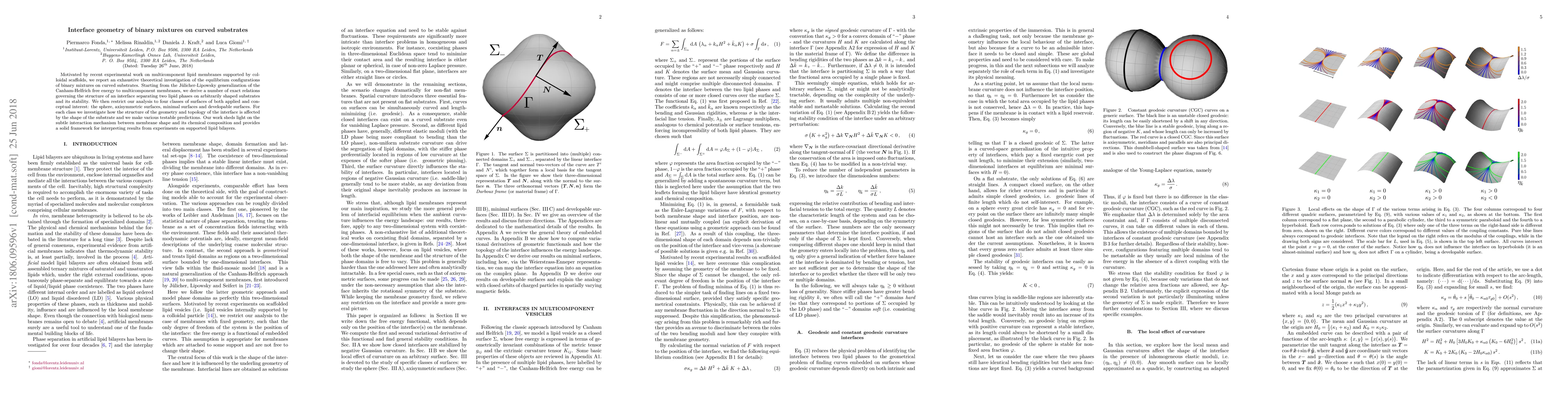 This paper theoretically investigates equilibrium configurations of binary lipid mixtures on curved substrates, deriving exact relations governing interface geometry and stability. It focuses on four surface types, providing insights into how substrate shape affects membrane structure and making testable predictions to interpret experimental results on supported lipid bilayers.