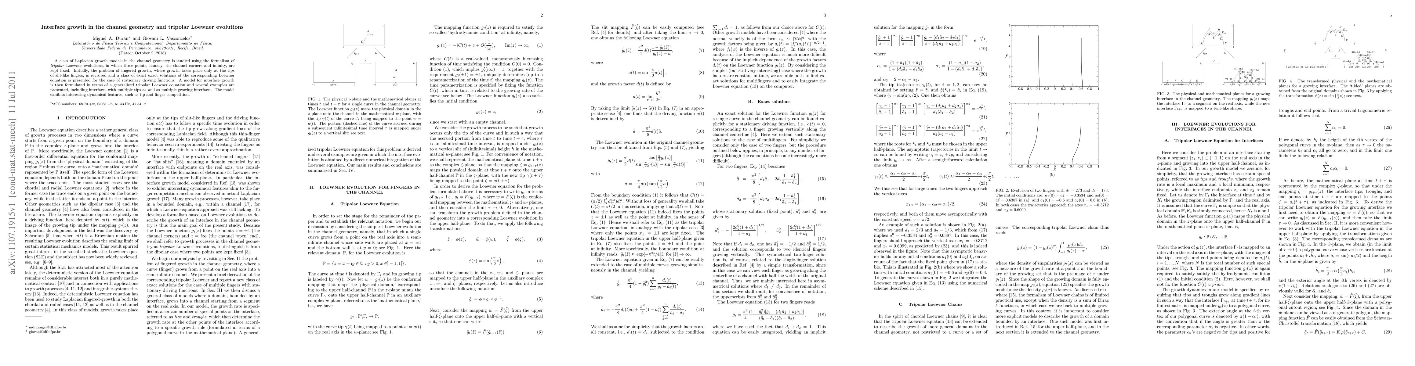 This paper explores Laplacian growth models in channel geometry using tripolar Loewner evolutions, presenting exact solutions for fingered growth and formulating a generalized model for interfaces with multiple tips and competition dynamics.
