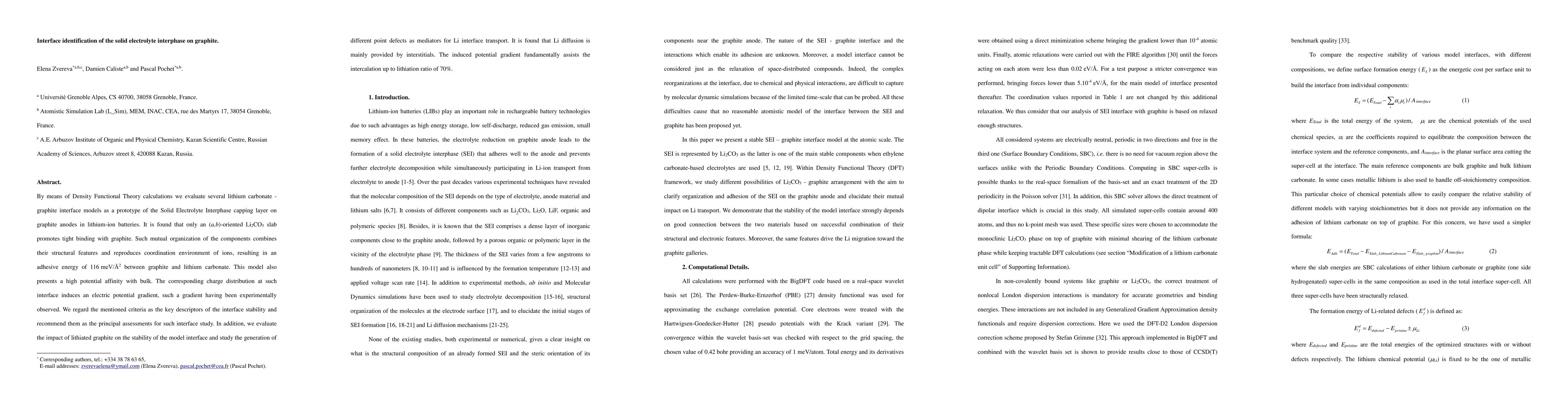 Researchers used Density Functional Theory calculations to study the interface between lithium carbonate and graphite in lithium-ion batteries. They found that a specific orientation of the lithium carbonate slab promotes tight binding with graphite, leading to a stable interface with potential applications for battery performance.