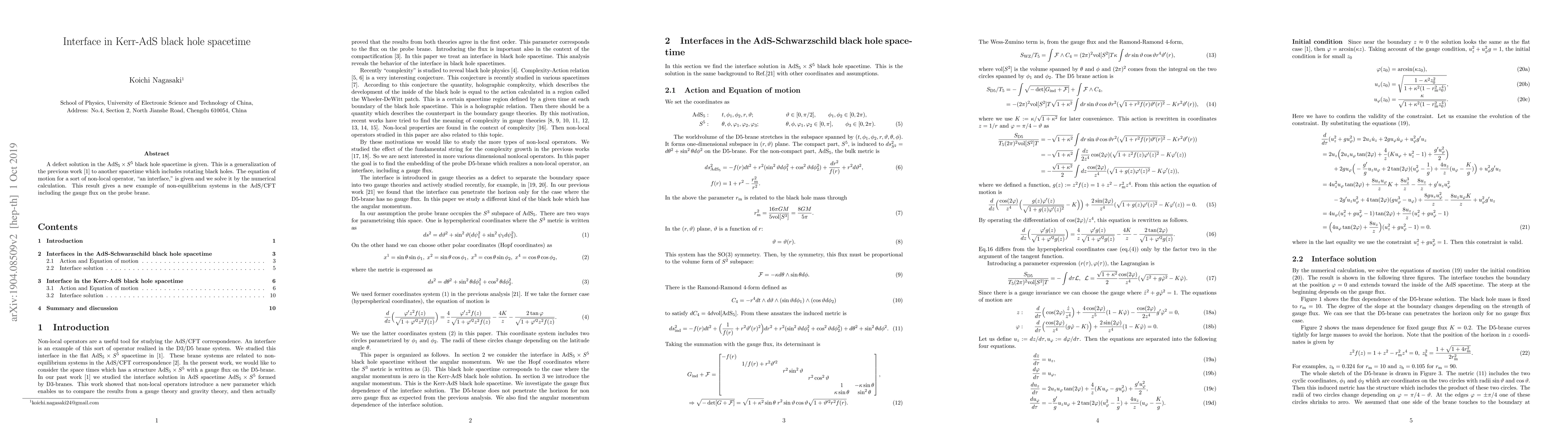 Researchers introduce a new solution to the Kerr-AdS black hole spacetime, proposing a non-local operator called an interface and demonstrating its numerical solution, providing insight into holographic relations of complexity in black holes.