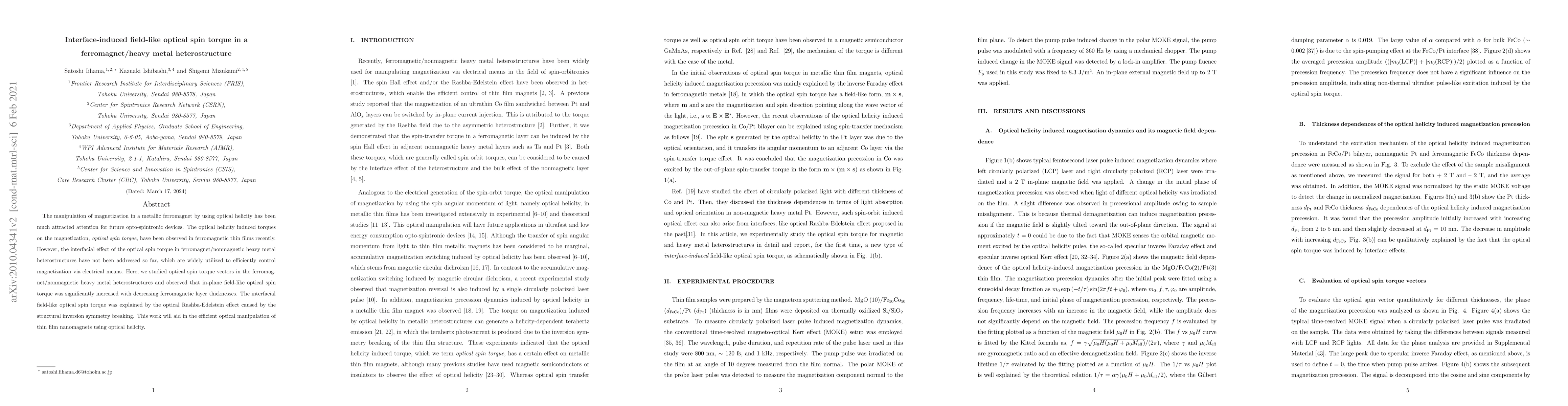 This study investigates the optical spin torque in ferromagnet/heavy metal heterostructures, finding that in-plane field-like optical spin torque increases with thinner ferromagnetic layers. The effect is attributed to the optical Rashba-Edelstein effect due to symmetry breaking at the interface, which could enhance opto-spintronic device efficiency.