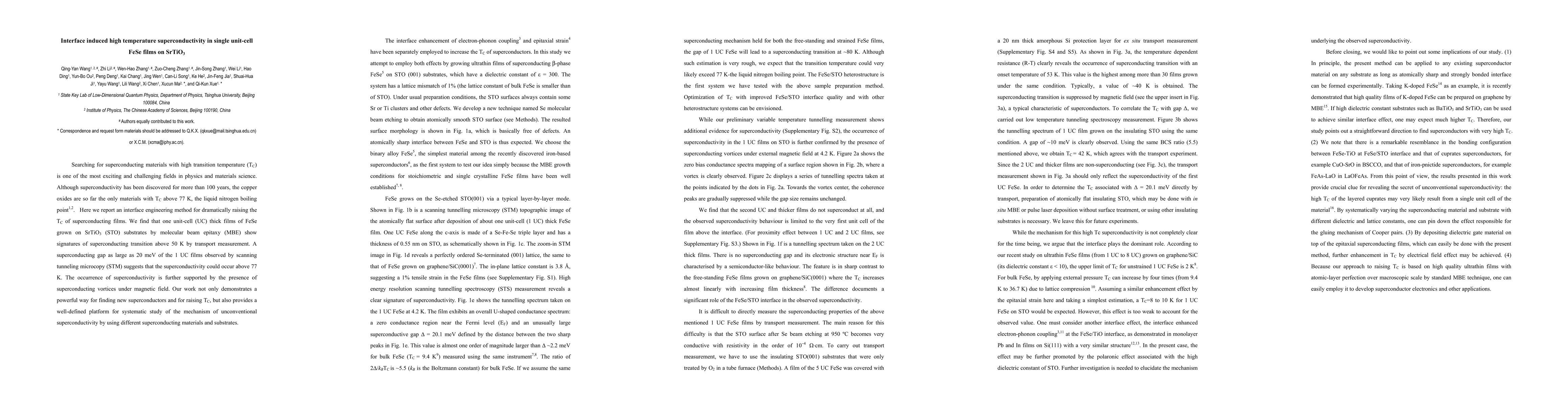 This paper reports the discovery of high temperature superconductivity in single unit-cell FeSe films on SrTiO3 substrates, achieved through interface engineering, with a transition temperature above 50 K and potentially exceeding 77 K. The findings provide a new method for enhancing superconducting properties and a platform for studying unconventional superconductivity.