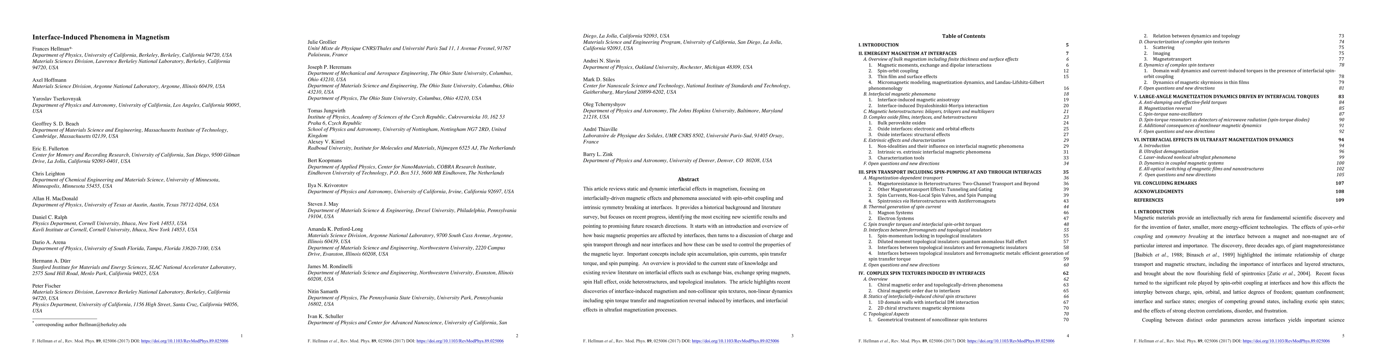 This paper reviews static and dynamic interfacial effects in magnetism, emphasizing recent advances in interface-induced magnetic phenomena related to spin-orbit coupling, and highlights new scientific results and future research directions, including spin transfer torque, spin currents, and ultrafast magnetization processes.