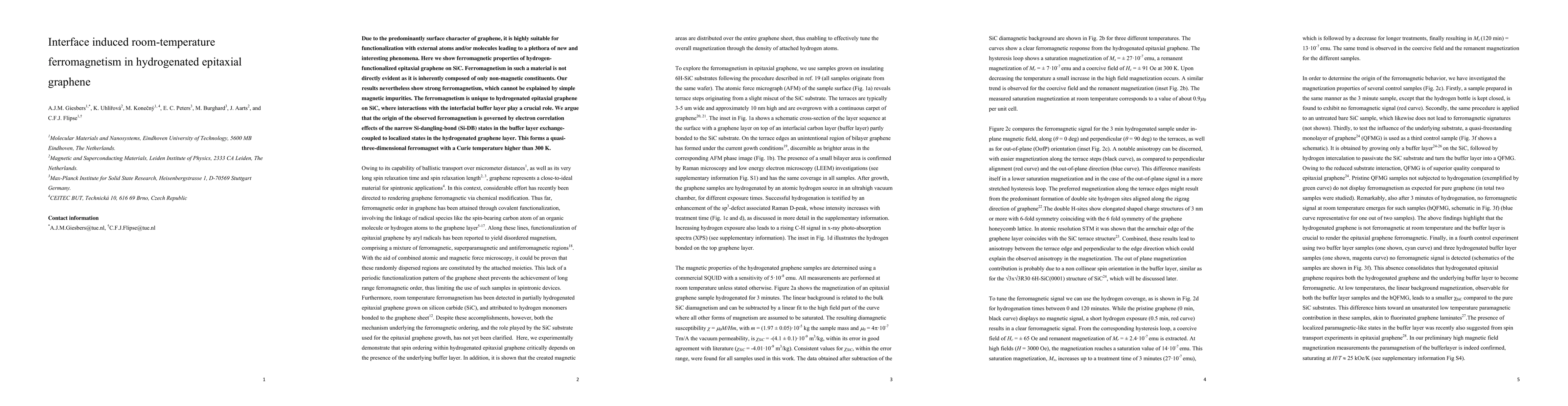 This study reveals room-temperature ferromagnetism in hydrogenated epitaxial graphene on SiC, driven by interfacial interactions with the Si-dangling-bond states in the buffer layer, rather than magnetic impurities. The observed ferromagnetism results from electron correlation effects, forming a quasi-three-dimensional ferromagnet with a Curie temperature exceeding 300 K.