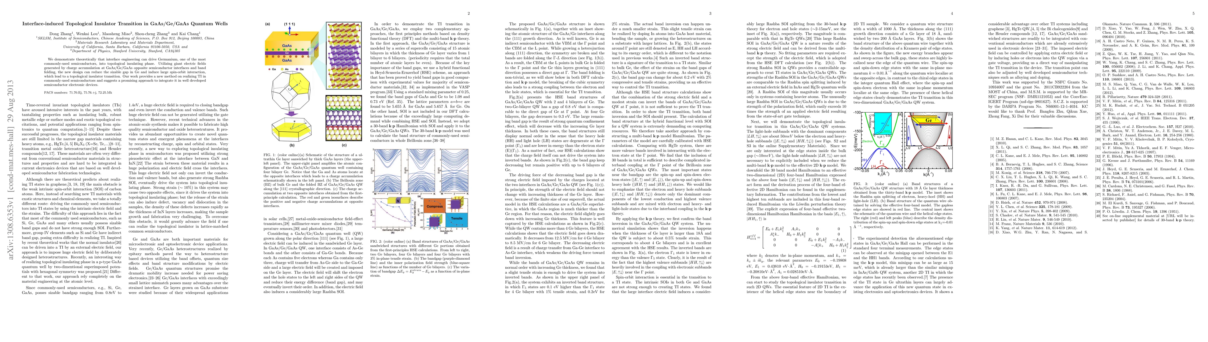 We demonstrate theoretically that interface engineering can drive Germanium, one of the most commonly-used semiconductors, into topological insulating phase. Utilizing giant electric fields generated by charge accumulation at GaAs/Ge/GaAs opposite semiconductor interfaces and band folding, the new design can reduce the sizable gap in Ge and induce large spin-orbit interaction, which lead to a topological insulator transition. Our work provides a new method on realizing TI in commonly-used semiconductors and suggests a promising approach to integrate it in well developed semiconductor electronic devices.
