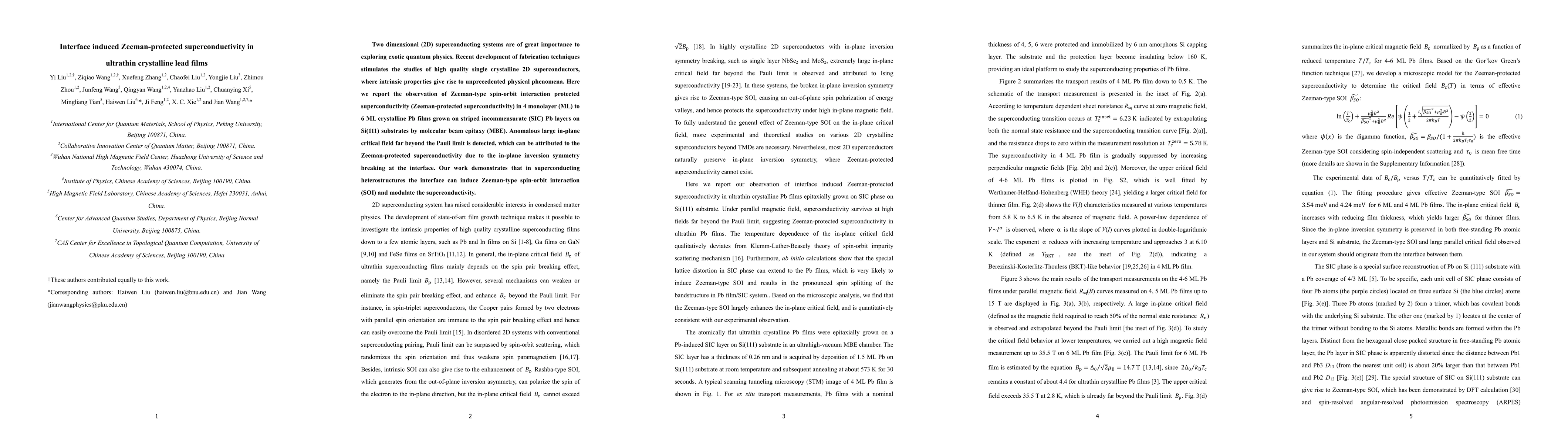 This paper reports the discovery of Zeeman-protected superconductivity in ultrathin crystalline Pb films grown on Si(111) substrates, revealing an anomalously large in-plane critical field due to the interface-induced Zeeman-type spin-orbit interaction. This finding highlights the role of heterostructures in modulating superconducting properties.