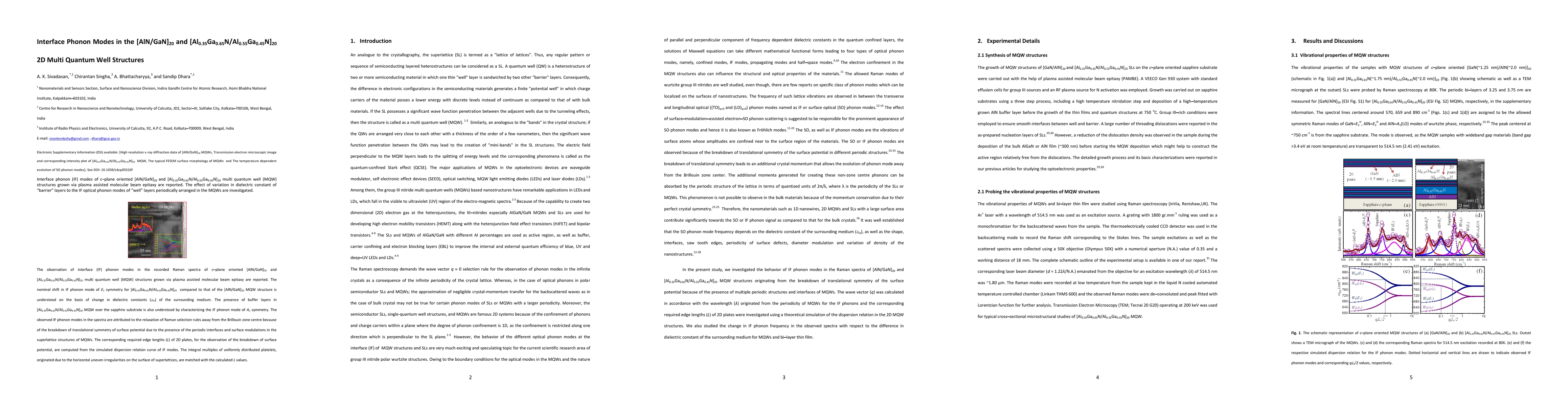 Researchers studied the interface phonon modes in two types of 2D multi quantum well structures with varying barrier layers, finding that dielectric constant affects optical phonon modes in the well layers.