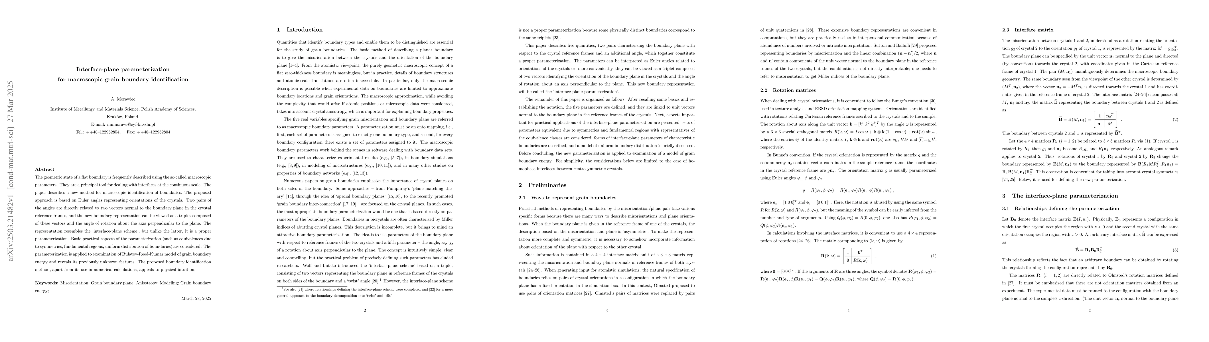 The interface-plane parameterization based on two vectors (n1, n2) and the rotation angle (χ) offers a natural and intuitive way to characterize grain boundaries.