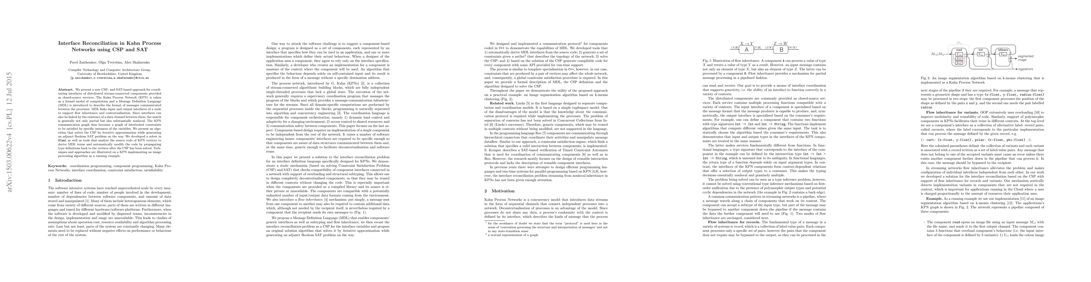 This paper introduces a CSP- and SAT-based method for reconciling interfaces in Kahn Process Networks (KPNs), using a Message Definition Language (MDL) to describe message formats and facilitate interface coordination. The proposed algorithm iteratively solves the communication constraints and generates a SAT problem to ensure proper interface matching.