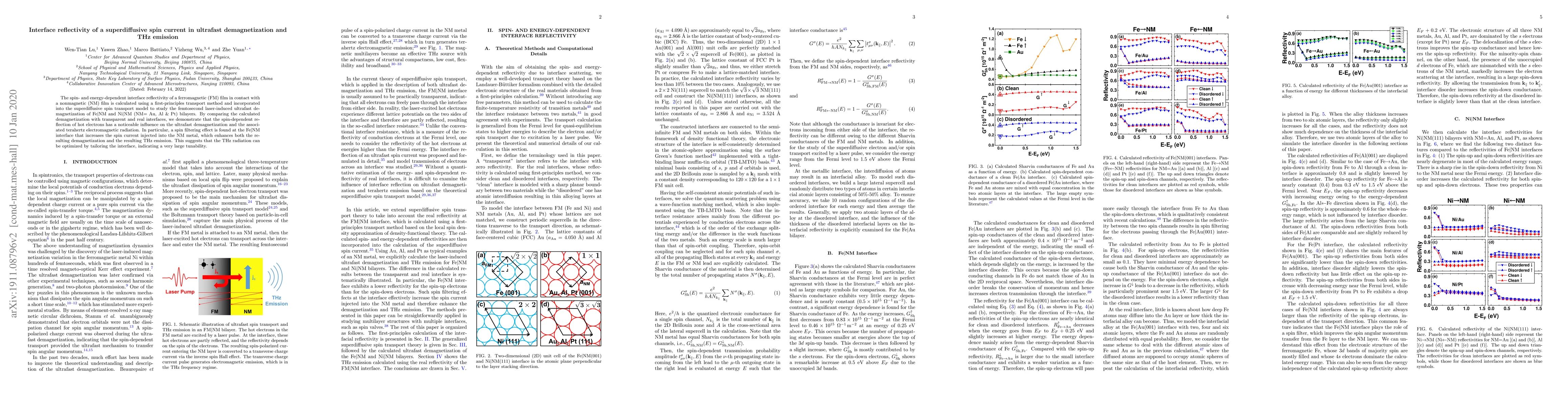 This paper investigates the impact of interface reflectivity on ultrafast demagnetization and THz emission in ferromagnetic/nonmagnetic bilayers using first-principles transport methods. It finds that spin-dependent reflection of hot electrons significantly influences demagnetization and THz radiation, with a spin filtering effect enhancing demagnetization and THz emission in Fe|NM interfaces.