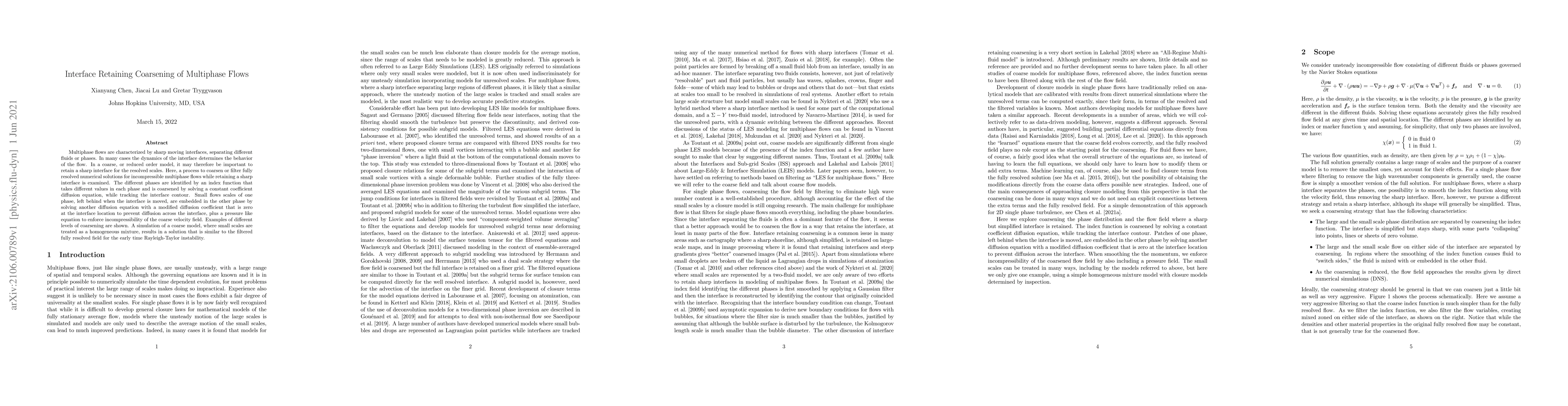 This paper proposes a method for coarsening fully resolved multiphase flow simulations while maintaining sharp interfaces. It involves solving a diffusion equation to coarsen phase indices and embedding small-scale flows in the other phase without diffusion across the interface, followed by a pressure equation to enforce incompressibility. The method is demonstrated through simulations of early-time Rayleigh-Taylor instability.