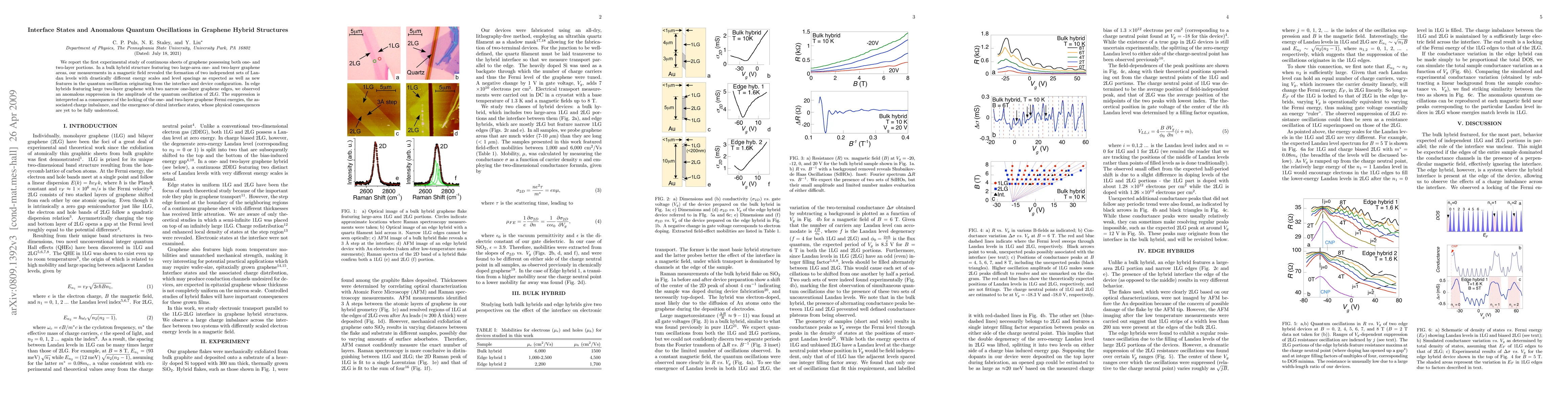 One- and two-layer graphene have recently been shown to feature new physical phenomena such as unconventional quantum Hall effects and prospects of supporting a non-silicon technological platform using epitaxial graphene. While both one- and two-layer graphene have been studied extensively, continuous sheets of graphene possessing both parts have not yet been explored. Here we report a study of such graphene hybrid structures. In a bulk hybrid featuring two large-area one- and two-layer graphene and an interface between them, two sets of Landau levels and features related to the interface were found. In edge hybrids featuring a large two-layer graphene with narrow one-layer graphene edges, we observed an anomalous suppression in quantum oscillation amplitude due to the locking of one- and two-layer graphene Fermi energies and emergent chiral interface states. These findings demonstrate the importance of these hybrid structures whose unique interface states and related phenomena deserve further studies.