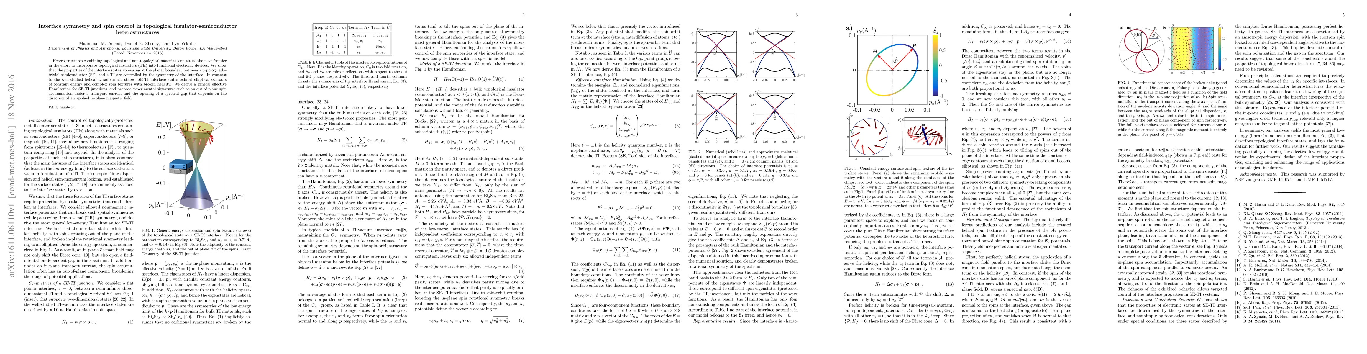 This paper investigates the interface states between topological insulators and topologically-trivial semiconductors, revealing that interface symmetry dictates the properties of these states, including elliptical contours and complex spin textures. Proposed experimental signatures include out-of-plane spin accumulation and a spectral gap influenced by an in-plane magnetic field.