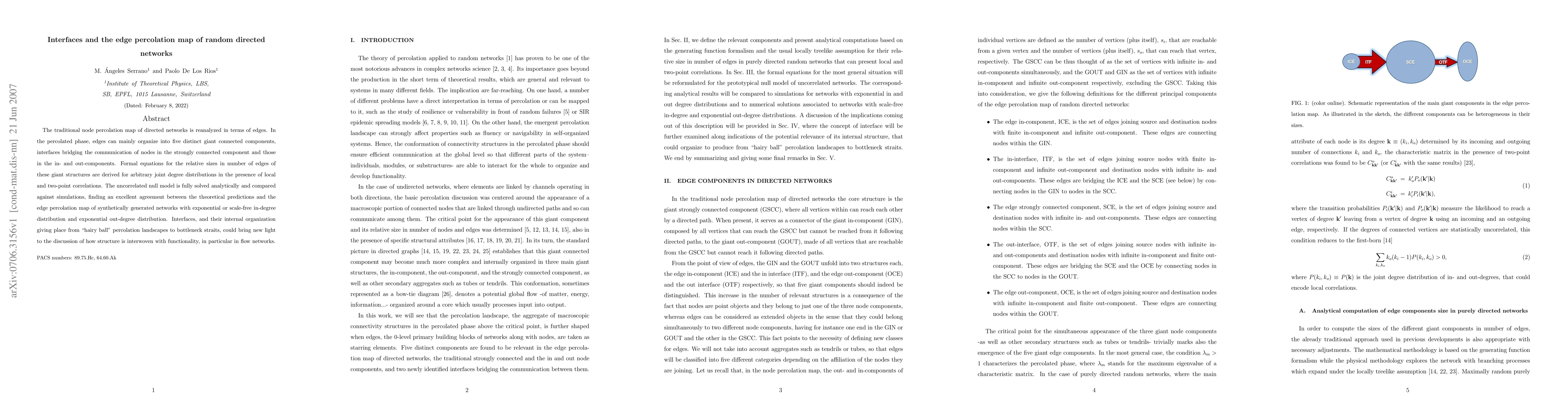 The traditional node percolation map of directed networks is reanalyzed in terms of edges. In the percolated phase, edges can mainly organize into five distinct giant connected components, interfaces bridging the communication of nodes in the strongly connected component and those in the in- and out-components. Formal equations for the relative sizes in number of edges of these giant structures are derived for arbitrary joint degree distributions in the presence of local and two-point correlations. The uncorrelated null model is fully solved analytically and compared against simulations, finding an excellent agreement between the theoretical predictions and the edge percolation map of synthetically generated networks with exponential or scale-free in-degree distribution and exponential out-degree distribution. Interfaces, and their internal organization giving place from "hairy ball" percolation landscapes to bottleneck straits, could bring new light to the discussion of how structure is interwoven with functionality, in particular in flow networks.
