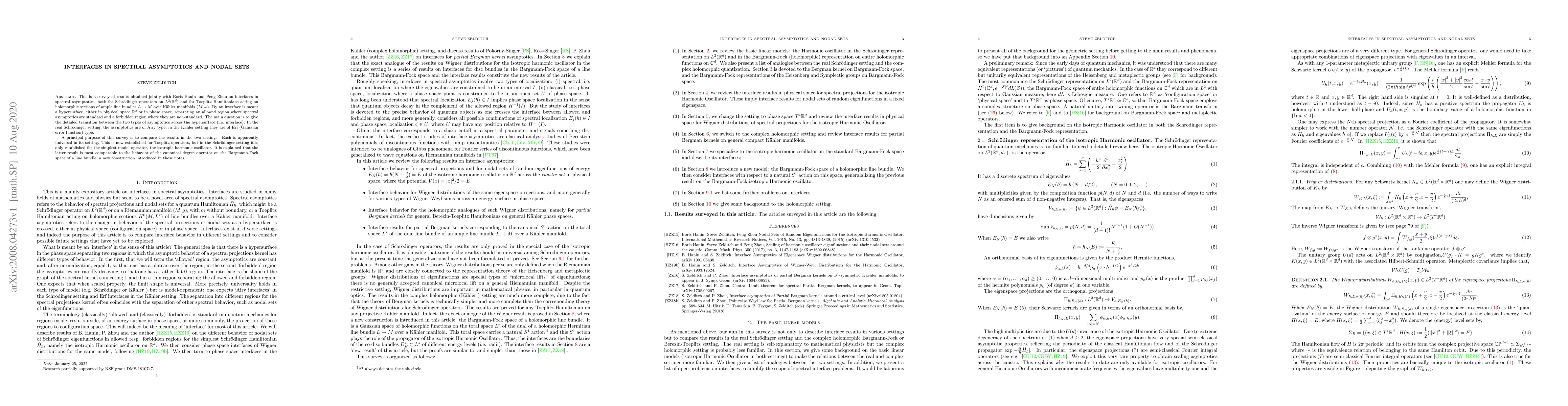 This paper surveys research on interfaces in spectral asymptotics, including Schrödinger operators and Kähler manifolds, aiming to understand the transition between standard and non-standard asymptotics across hypersurfaces separating allowed and forbidden regions.