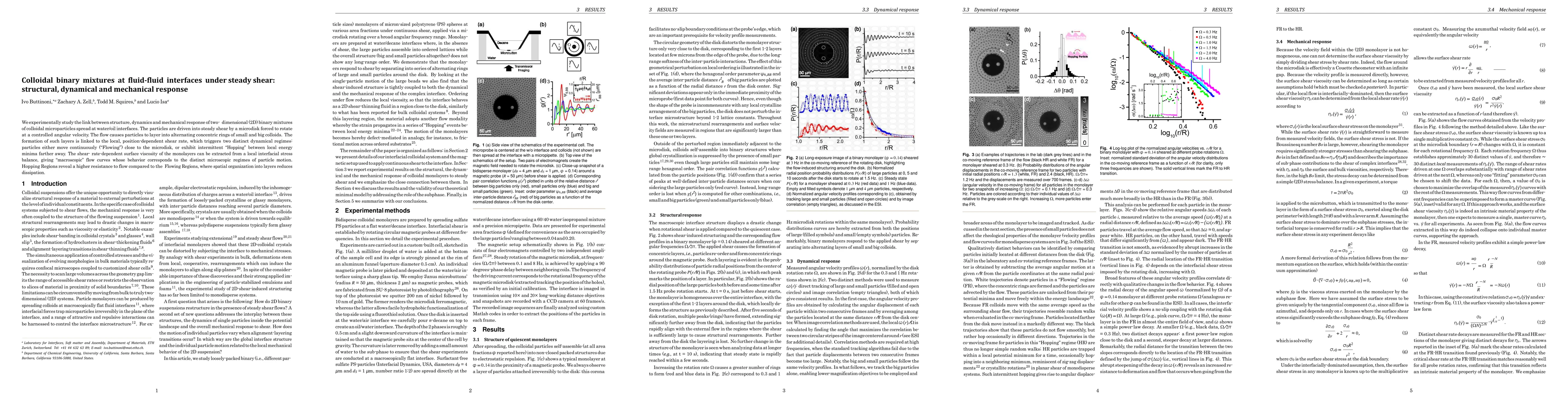 This paper investigates the structural dynamics and rheological response of charged colloidal monolayers at the water/oil interface under steady shear, revealing two distinct particle motion regimes: continuous "Flowing" near the microdisk and intermittent "Hopping" farther away. The study extracts shear-rate dependent surface viscosity from an interfacial stress balance, showing a yield stress in Hopping Regions and power-law shear-thinning in Flowing Regions.