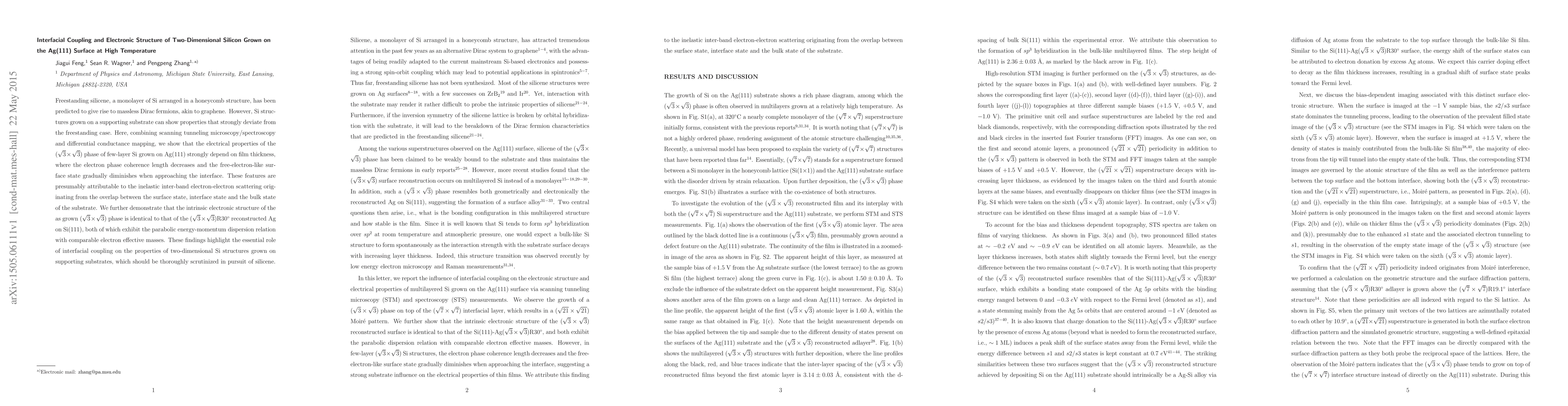 This paper explores the electronic structure of two-dimensional silicon grown on Ag(111) using scanning tunneling microscopy/spectroscopy, revealing that the electrical properties of the ($\sqrt{3}\times\sqrt{3}$) phase depend on film thickness due to interfacial coupling, affecting electron phase coherence and surface state characteristics. The study emphasizes the importance of substrate interaction in determining the properties of silicene-like structures.