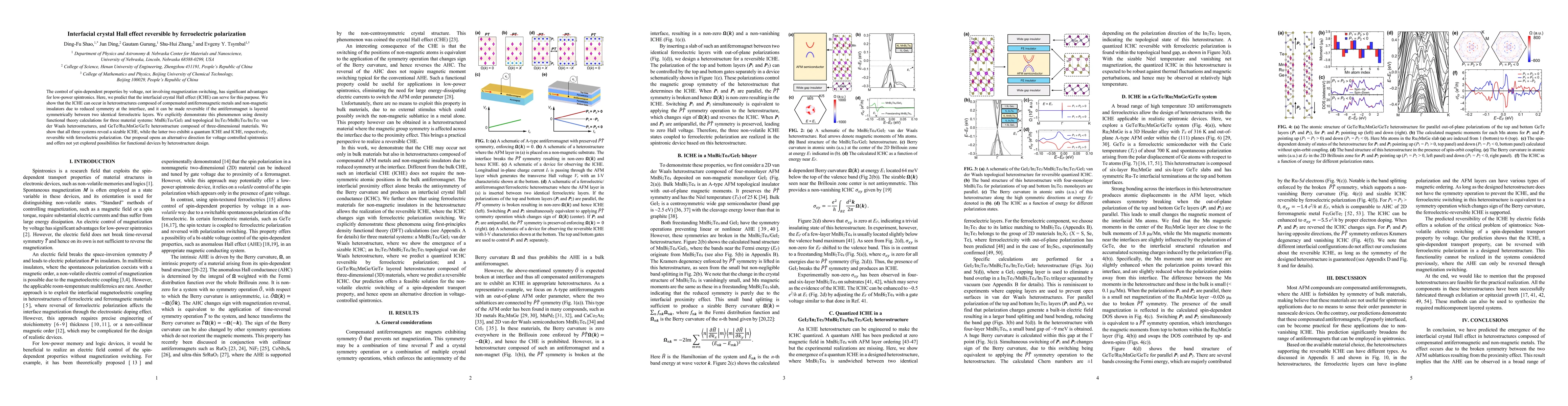 This paper proposes that the interfacial crystal Hall effect (ICHE) can be controlled by ferroelectric polarization without magnetization switching, offering significant advantages for low-power spintronics. The authors demonstrate reversible ICHE in heterostructures with layered antiferromagnetic materials sandwiched between ferroelectric layers, using density functional theory calculations on three material systems.