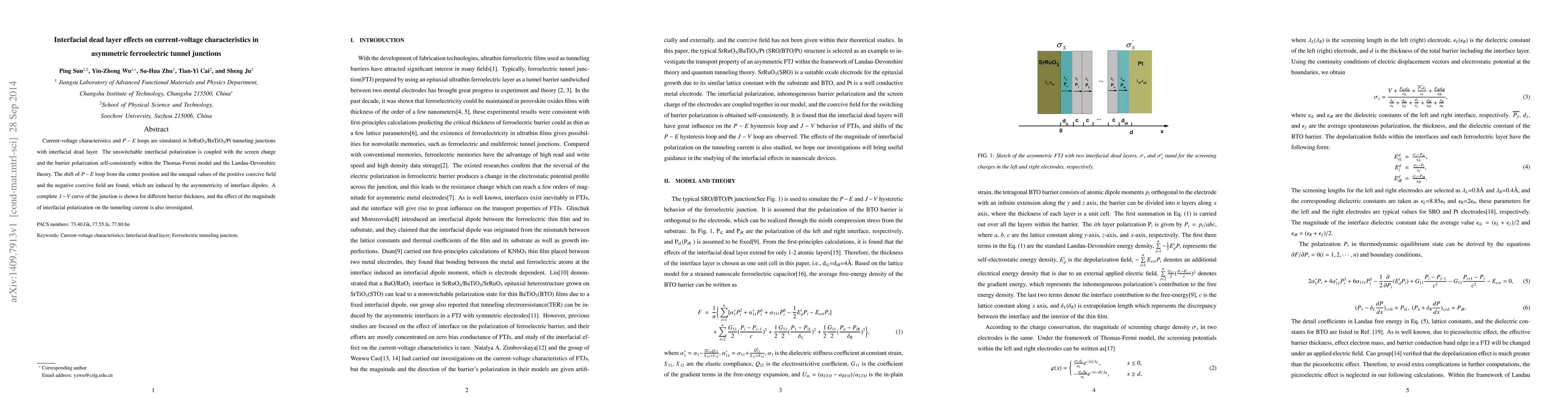 Researchers studied how a thin layer at the interface of two materials affects their behavior in a special type of tunneling device called an asymmetric ferroelectric tunnel junction. They found that this layer can cause unusual shifts in the material's electrical properties.