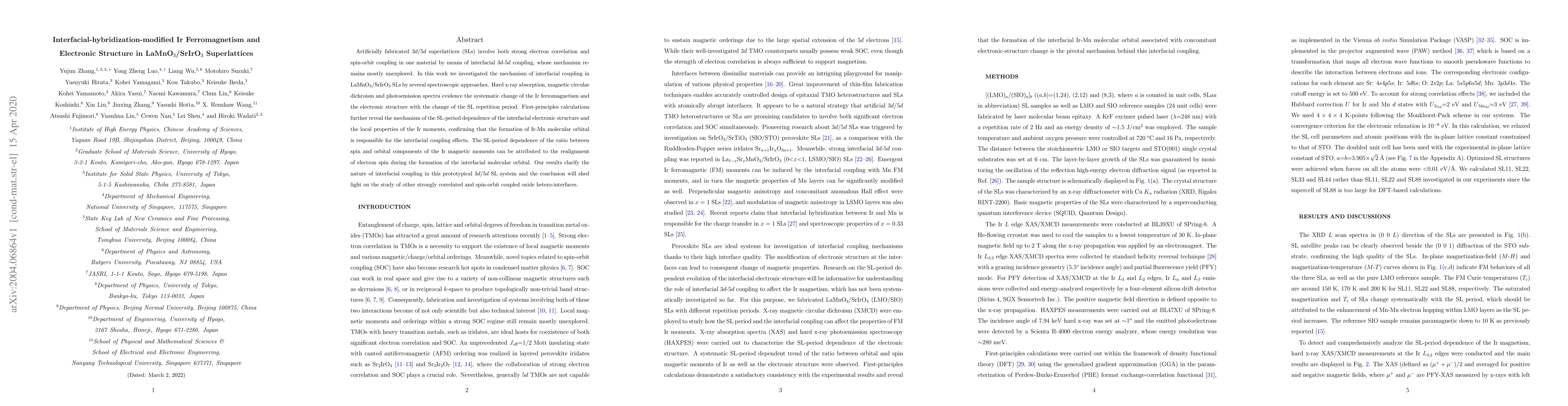 This paper investigates the mechanism of interfacial coupling in LaMnO$_3$/SrIrO$_3$ superlattices using spectroscopic techniques and first-principles calculations, revealing that the formation of Ir-Mn molecular orbitals drives the ferromagnetism and electronic structure changes in the system. The study elucidates the role of the superlattice period in determining the spin and orbital components of Ir magnetic moments.