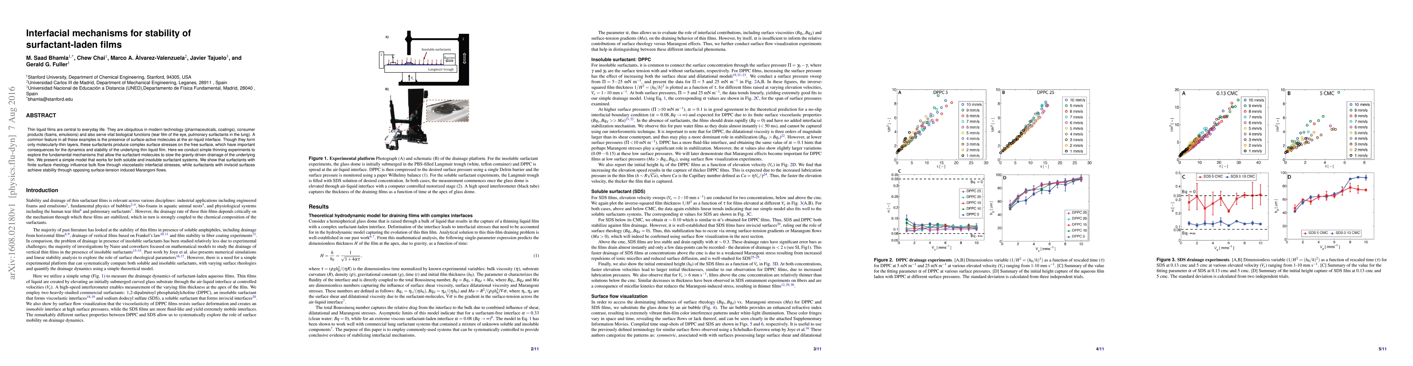 This paper investigates the fundamental mechanisms by which surfactants stabilize thin liquid films through interfacial stresses. The study reveals that surfactants with viscoelastic properties slow film drainage via interfacial rheology, while those with inviscid surfaces stabilize films through Marangoni effects.