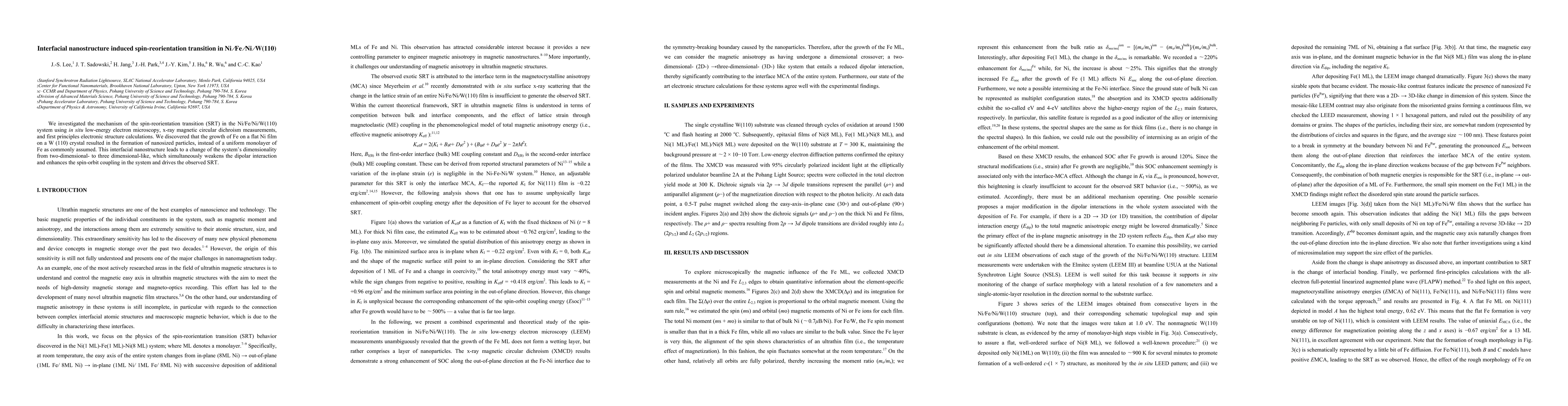 We investigated the mechanism of the spin-reorientation transition (SRT) in the Ni/Fe/Ni/W(110) system using in situ low-energy electron microscopy, x-ray magnetic circular dichroism measurements, and first principles electronic structure calculations. We discovered that the growth of Fe on a flat Ni film on a W (110) crystal resulted in the formation of nanosized particles, instead of a uniform monolayer of Fe as commonly assumed. This interfacial nanostructure leads to a change of the system's dimensionality from two dimensional- to three dimensional-like, which simultaneously weakens the dipolar interaction and enhances the spin-orbit coupling in the system and drives the observed SRT.