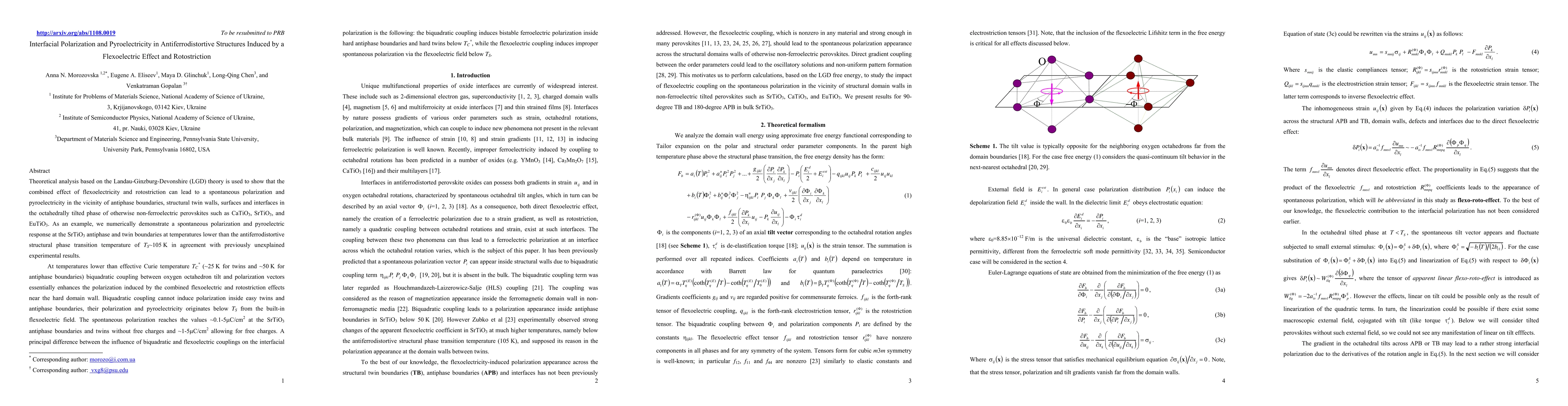 This paper demonstrates that flexoelectricity and rotostriction can induce spontaneous polarization near antiphase boundaries in non-ferroelectric perovskites like SrTiO3, using the Landau-Ginzburg-Devonshire theory. Numerical results show significant polarization on the order of 1-5 μC/cm² at SrTiO3 boundaries below its transition temperature of ~105 K.