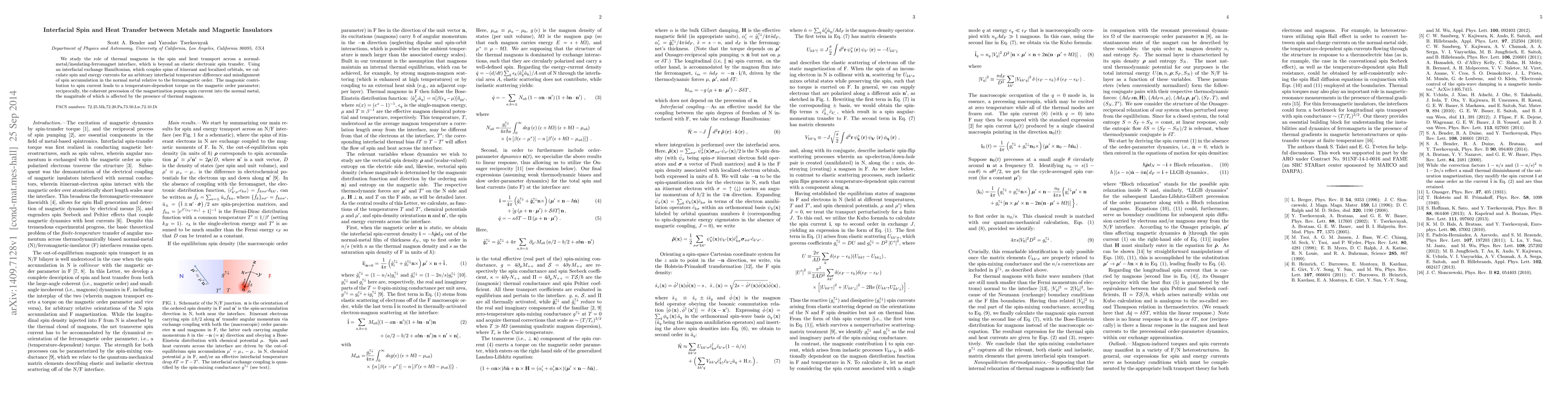 Researchers studied spin and heat transfer at metal-insulator interfaces, finding that thermal magnons contribute to both spin and energy currents. This work highlights the complex interplay between spin and heat transport in magnetic systems.