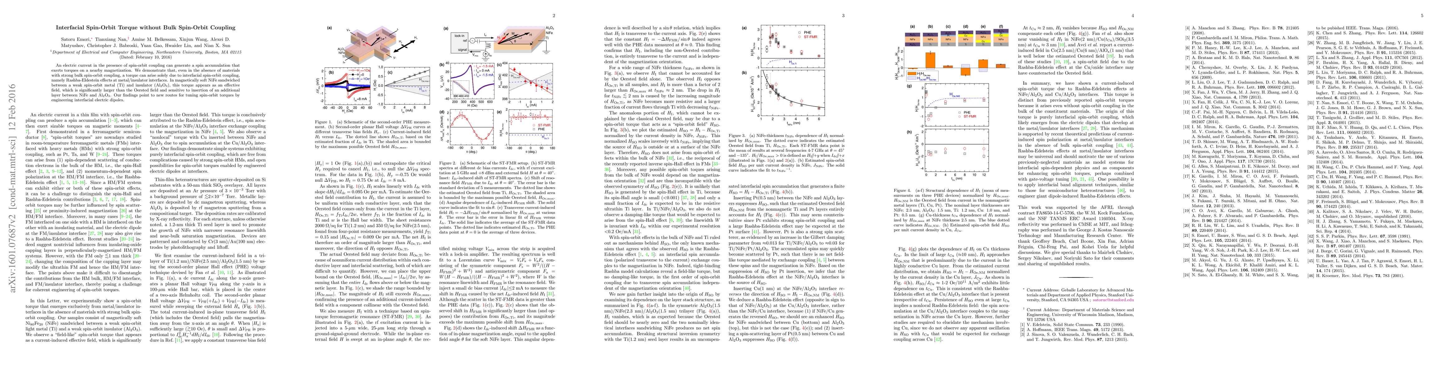 This study demonstrates that spin-orbit torque can occur at metal/insulator interfaces via Rashba-Elsasser effects, even without bulk spin-orbit coupling. In magnetically soft NiFe sandwiched between Ti and Al$_2$O$_3$, the interfacial coupling generates a significant effective field that surpasses the Oersted field, highlighting potential for tuning spin-orbit torques through engineered interfacial electric dipoles.