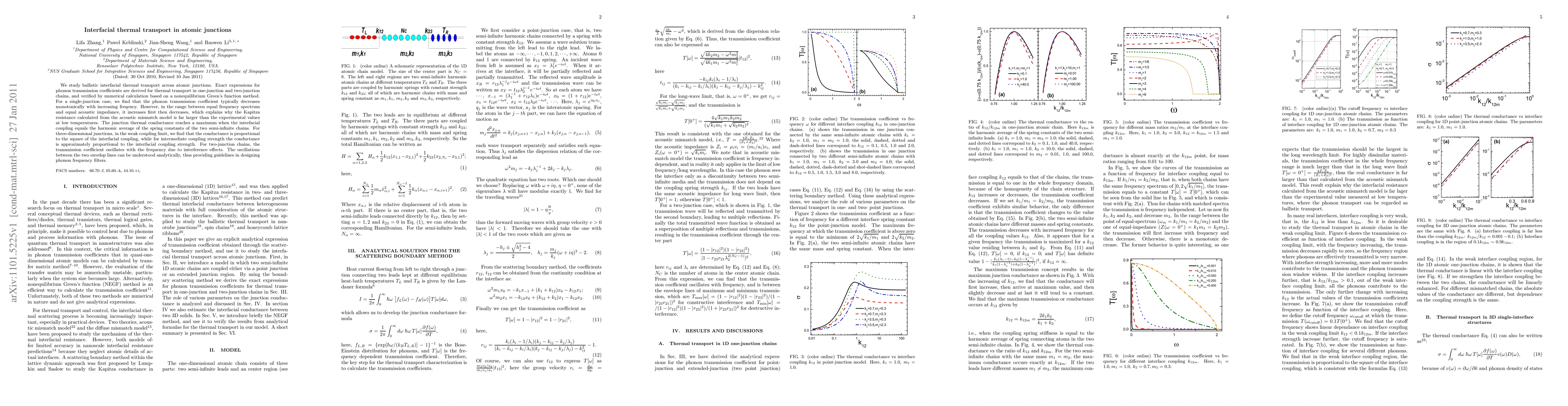 Researchers studied thermal transport in atomic junctions, finding that phonon transmission coefficients increase before decreasing with frequency, and that the optimal thermal conductance is achieved when interfacial coupling equals harmonic average of spring constants.