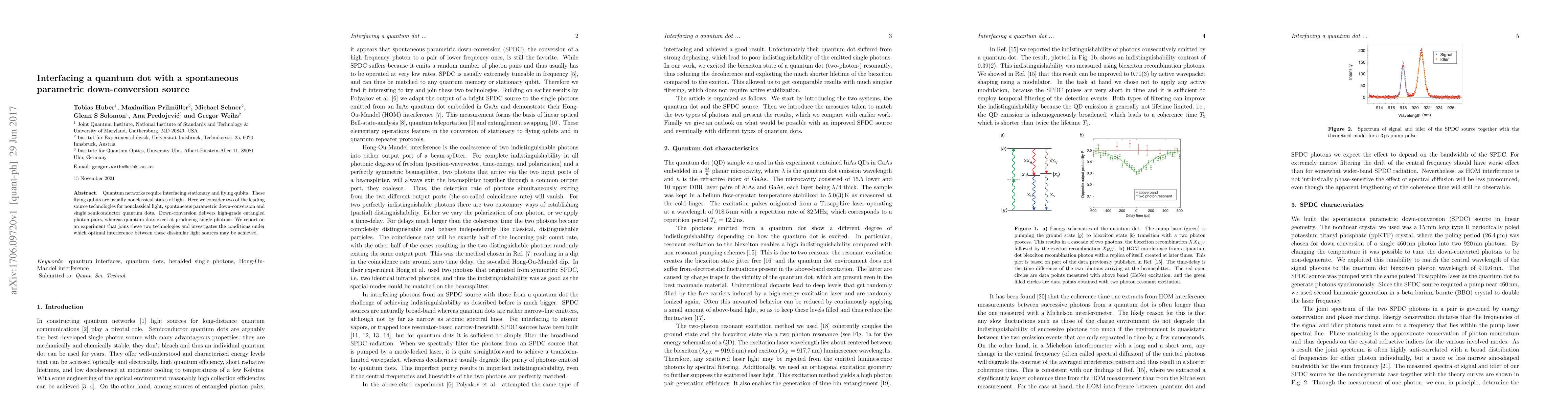 The paper explores the interface between quantum dots and spontaneous parametric down-conversion sources to achieve optimal interference for quantum networks. It investigates conditions for combining high-grade entangled photon pairs from down-conversion with single photons from quantum dots.