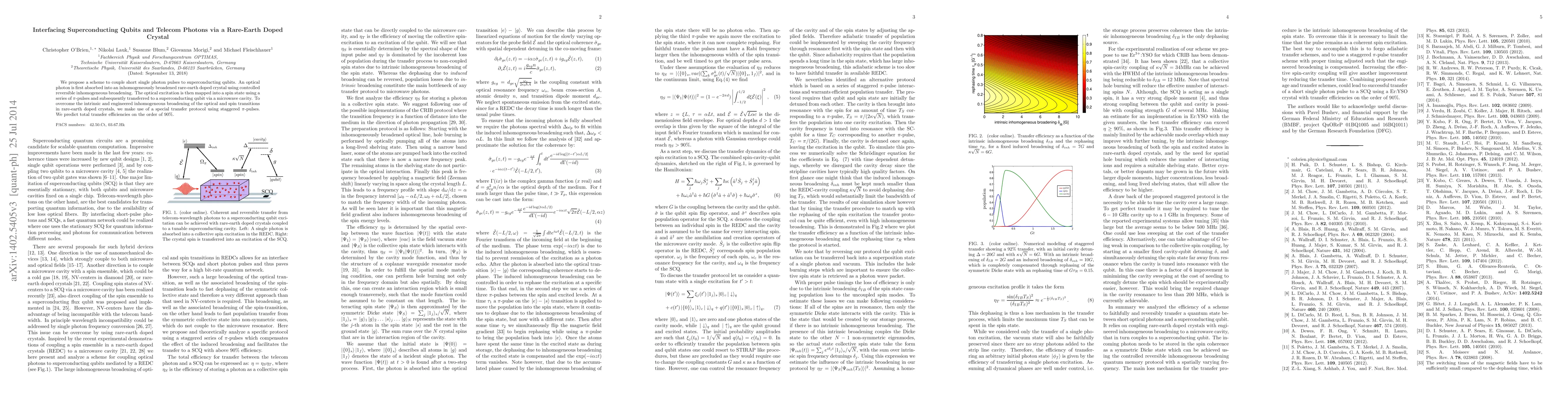 The research proposes a scheme to couple short single photon pulses to superconducting qubits using a rare-earth doped crystal. It involves absorbing an optical photon into the crystal, mapping the optical excitation into a spin state with $\pi$-pulses, and transferring this to a superconducting qubit via a microwave cavity. The transfer protocol uses staggered $\pi$-pulses to overcome inhomogeneous broadening.