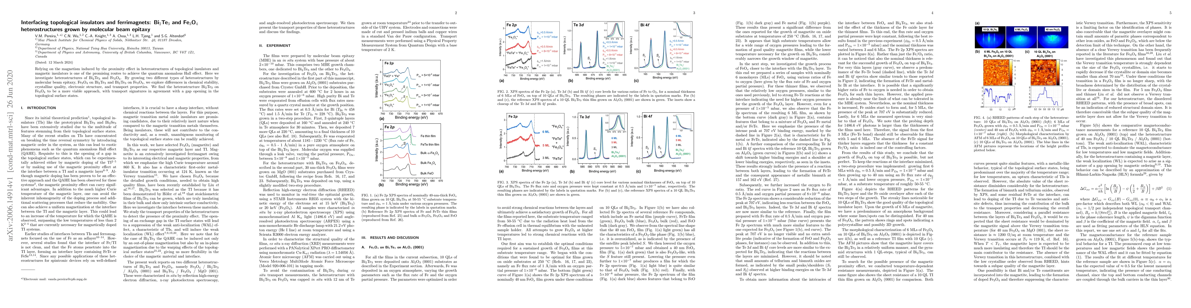 This study investigates heterostructures of topological insulator Bi$_2$Te$_3$ and ferrimagnet Fe$_3$O$_4$ grown via molecular beam epitaxy to explore the quantum anomalous Hall effect. Results indicate that Bi$_2$Te$_3$ on Fe$_3$O$_4$ heterostructures exhibit better stability, quality, and show transport signatures of a gap in topological surface states.