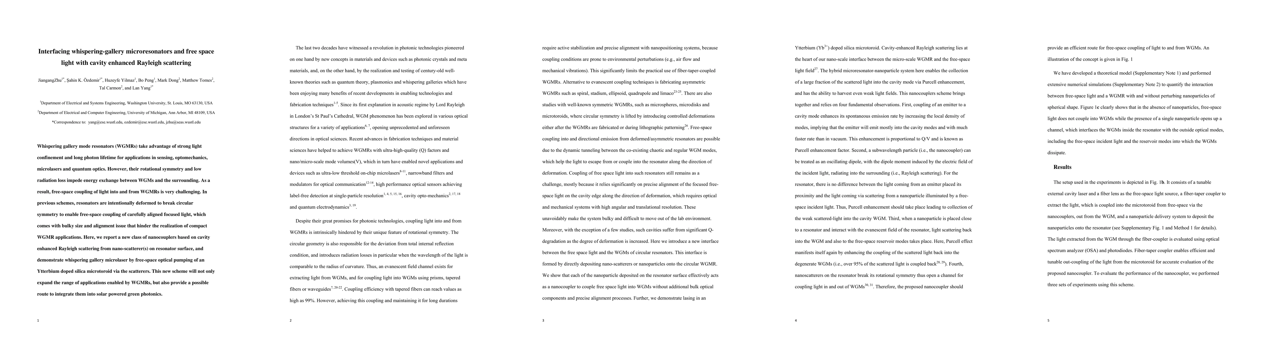 Researchers developed a new way to connect whispering gallery mode resonators to free space light, enabling compact applications in sensing and optomechanics. They achieved this using nano-scatterers on the resonator surface that enhance Rayleigh scattering for efficient energy exchange.
