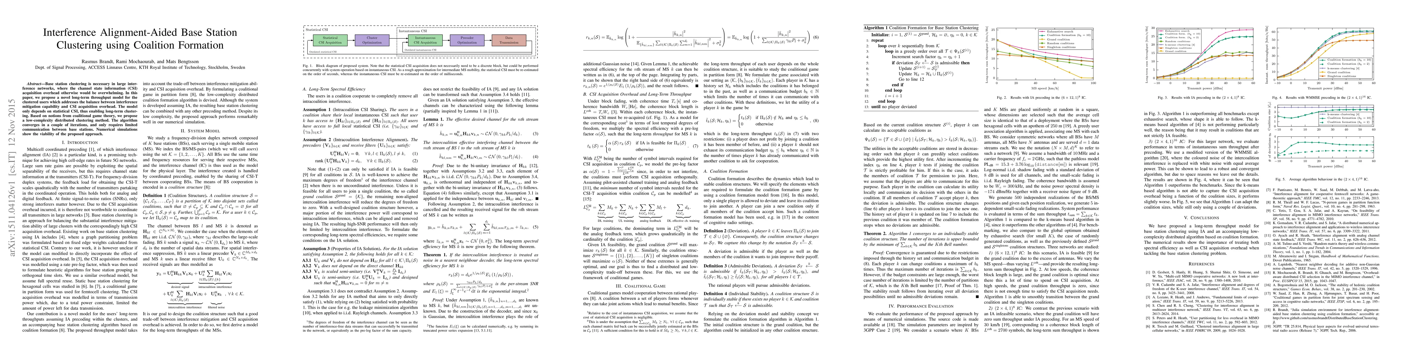 This paper proposes a novel long-term throughput model for clustered base stations to balance interference mitigation and channel state information acquisition overhead. It introduces a low-complexity, distributed clustering method based on coalitional game theory, which converges quickly with minimal inter-base station communication.