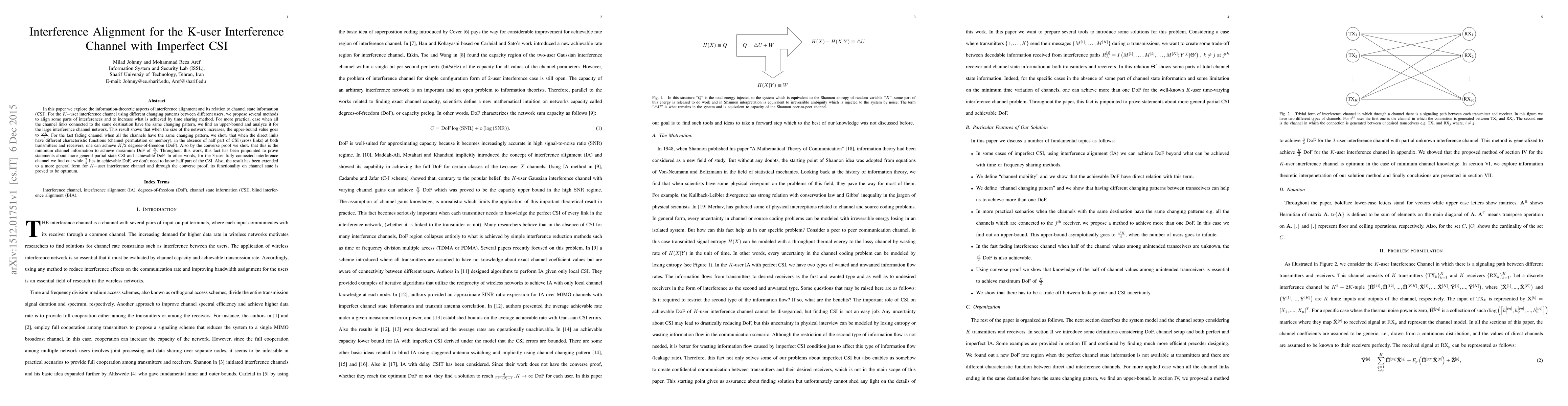 This paper proposes methods to align interference in a K-user channel with imperfect CSI, achieving up to $K/2$ degrees-of-freedom, and analyzes the case where knowing half of the CSI is sufficient for maximum DoF.