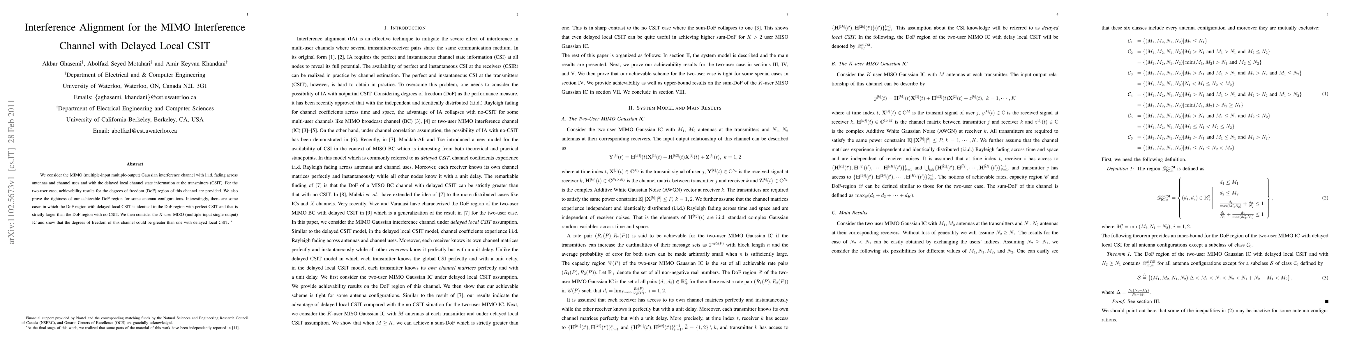 We consider the MIMO (multiple-input multiple-output) Gaussian interference channel with i.i.d. fading across antennas and channel uses and with the delayed local channel state information at the transmitters (CSIT). For the two-user case, achievability results for the degrees of freedom (DoF) region of this channel are provided. We also prove the tightness of our achievable DoF region for some antenna configurations. Interestingly, there are some cases in which the DoF region with delayed local CSIT is identical to the DoF region with perfect CSIT and that is strictly larger than the DoF region with no CSIT. We then consider the $K$-user MISO (multiple-input single-output) IC and show that the degrees of freedom of this channel could be greater than one with delayed local CSIT.