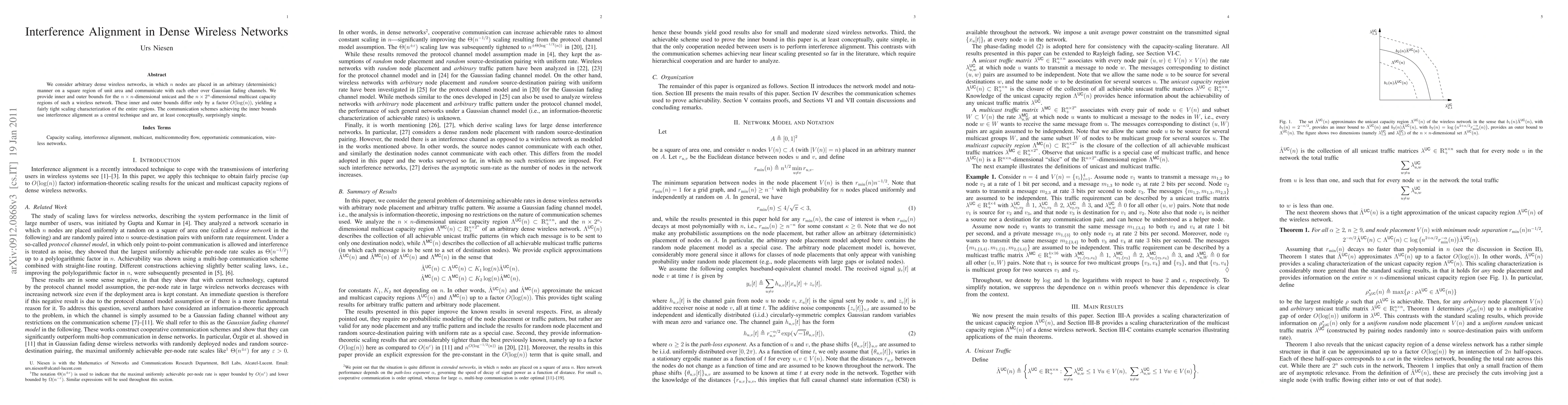 We consider arbitrary dense wireless networks, in which $n$ nodes are placed in an arbitrary (deterministic) manner on a square region of unit area and communicate with each other over Gaussian fading channels. We provide inner and outer bounds for the $n\times n$-dimensional unicast and the $n\times 2^n$-dimensional multicast capacity regions of such a wireless network. These inner and outer bounds differ only by a factor $O(\log(n))$, yielding a fairly tight scaling characterization of the entire regions. The communication schemes achieving the inner bounds use interference alignment as a central technique and are, at least conceptually, surprisingly simple.