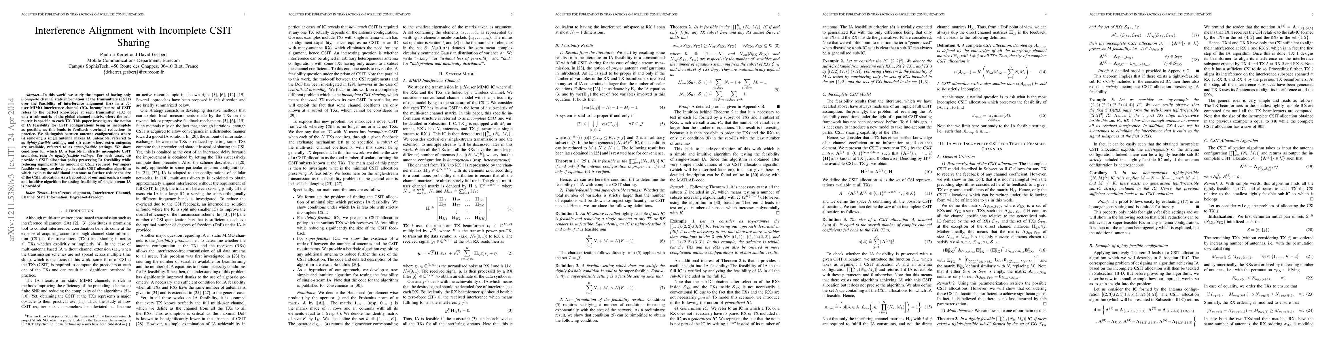 In this work, we study the impact of having only incomplete channel state information at the transmitters (CSIT) over the feasibility of interference alignment (IA) in a K-user MIMO interference channel (IC). Incompleteness of CSIT refers to the perfect knowledge at each transmitter (TX) of only a sub-matrix of the global channel matrix, where the sub-matrix is specific to each TX. This paper investigates the notion of IA feasibility for CSIT configurations being as incomplete as possible, as this leads to feedback overhead reductions in practice. We distinguish between antenna configurations where (i) removing a single antenna makes IA unfeasible, referred to as tightly-feasible settings, and (ii) cases where extra antennas are available, referred to as super-feasible settings. We show conditions for which IA is feasible in strictly incomplete CSIT scenarios, even in tightly-feasible settings. For such cases, we provide a CSIT allocation policy preserving IA feasibility while reducing significantly the amount of CSIT required. For super-feasible settings, we develop a heuristic CSIT allocation algorithm which exploits the additional antennas to further reduce the size of the CSIT allocation. As a byproduct of our approach, a simple and intuitive algorithm for testing feasibility of single stream IA is provided.