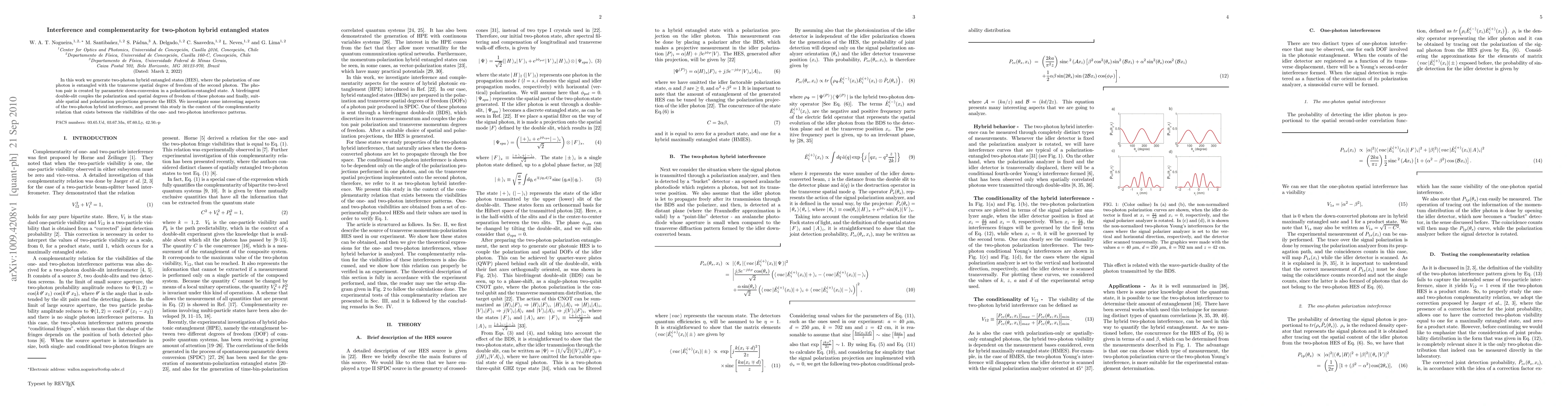 This paper generates two-photon hybrid entangled states through parametric down-conversion and explores their interference properties. It examines the complementarity between the visibilities of one- and two-photon interference patterns.